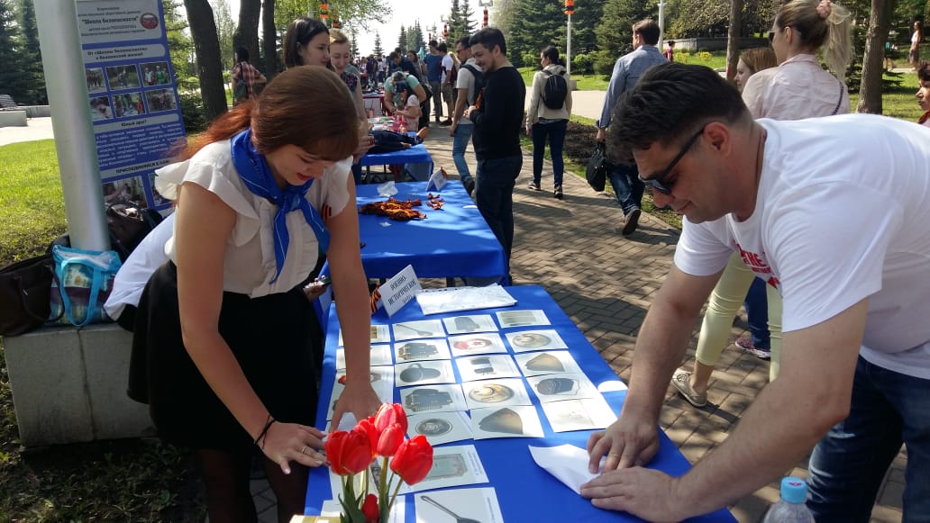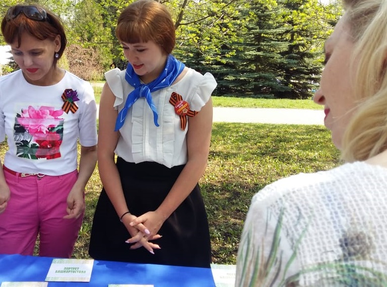 9 Мая 2019 года Дарья Бакулева, студентка 2 курса направления «Начальное образование» Института педагогики БГПУ им. М. Акмуллы, волонтер отряда «Палитра» совместно с «серебряным» волонтером, руководителем студенческого волонтерского отряда «Палитра» ИП БГПУ им. М. Акмуллы Екатериной Савельевой приняли участие в мероприятиях, посвященных Дню Победы (организатор - Управление по воспитательной работе и молодежной политике БГПУ им. М. Акмуллы).  Волонтеры провели в  парке имени Александра Матросова г. Уфы для гостей и участников мероприятия военно-историческое лото «Личные вещи солдат и офицеров времен ВОВ 1941-1945 гг.». Военно-историческое лото входит в серию развивающих игр-лото «Портрет Башкортостана», разработанную в БГПУ им. М. Акмуллы, на основе экспонатов Республиканского музея Боевой славы.