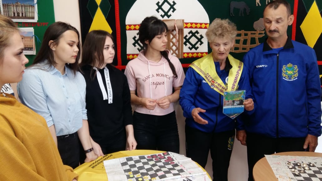 Ну а пока, во время трудового семестра произошла неожиданная встреча! В рамках проходящей в Уфе Всероссийской спартакиады пенсионеров,  27 августа 2019 года заглянули в гости к ребятам серебряные волонтеры из Приморского края - Галина Желудкова и Владимир Шмелев. Эта была встреча двух проектов на территории Института педагогики – нашего проекта «Играя – учимся!» (на основе серии развивающих игр-лото «Портрет Башкортостана»), который стал в июле 2019 года победителем Всероссийского конкурса молодежных проектов среди образовательных организаций высшего образования и  благотворительного проекта «Игры моего детства». Произошел обмен опытом. Наставник проекта «Играя – учимся!», доцент кафедры теорий и методик начального образования Екатерина Савельева рассказала о цели проекта - распространять знания о культурных и исторических ценностях Башкортостана с помощью серии лото «Портрет Башкортостана» средствами добровольческой деятельности и провела игру с участниками мероприятия – с «серебряными» волонтерами и будущими волонтерами проекта «Играя – учимся!».