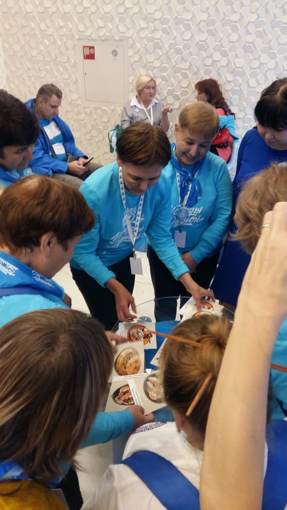 Наставник проекта – «серебряный» волонтер, руководитель волонтерского отряда «Палитра», к.п.н., доц. кафедры теорий и методик начального образования БГПУ им. М. Акмуллы Екатерина Савельева  совместно с «серебряным» волонтером делегации Республики Башкортостан Лялей Абубакировой провели игру-лото «Национальные кухни Башкортостана». Участники мероприятия играли в лото, сочиняли загадки, развивали тактильные  ощущения. В играх приняло участие 25 человек, из них 24 - с нарушением зрения.