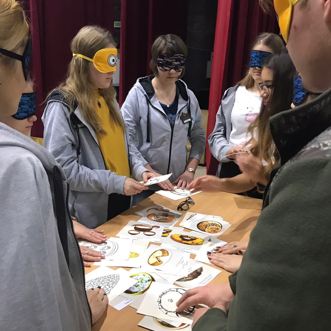 Руководитель проекта Дарья Бакулева и волонтёр проекта Диана Акбутина – студентки направления «Начальное образование» ИП БГПУ им. М. Акмуллы (наставник проекта – «серебряный» волонтер, руководитель волонтерского отряда «Палитра», к.п.н., доц. кафедры теорий и методик начального образования БГПУ им. М. Акмуллы Екатерина Савельева) -  провели игру-лото «Национальные кухни Башкортостана». Участники мероприятия играли в лото, сочиняли загадки, развивали тактильные  ощущения. В играх приняло участие 12 человек, из них 4 - с нарушением зрения.