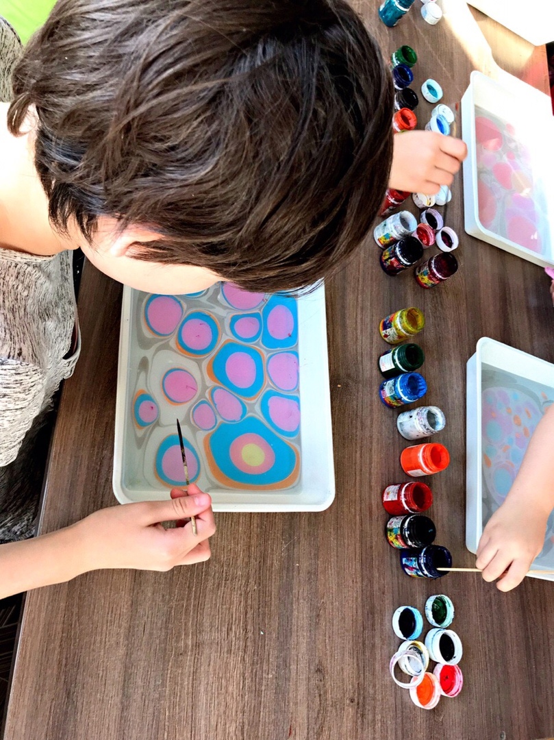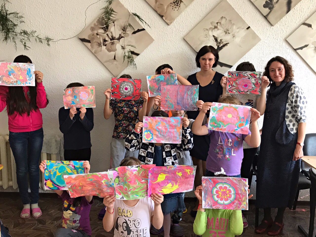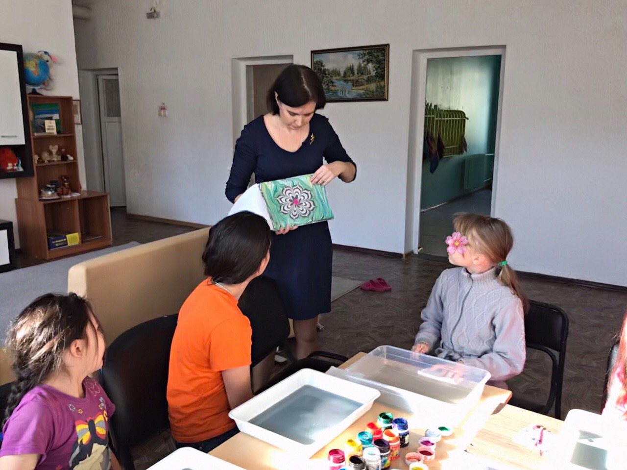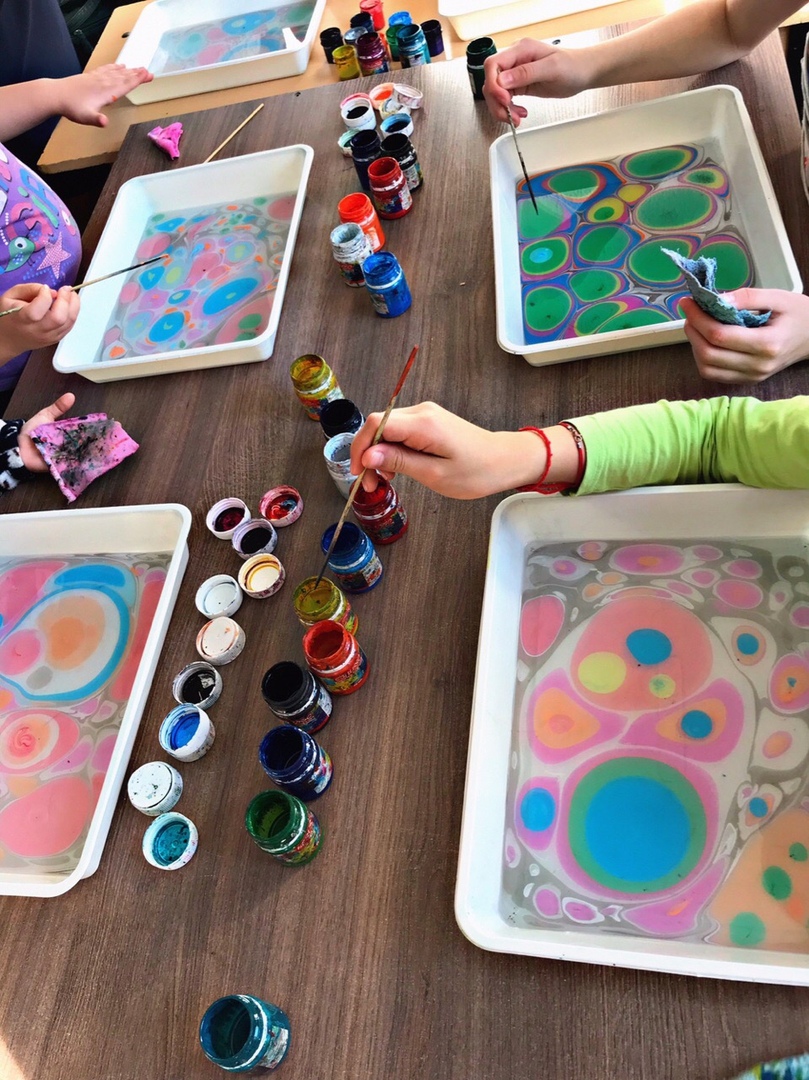 В рамках проекта «Школа эстетического воспитания» для воспитанниц приюта проводятся занятия по рисованию в технике «Эбру»