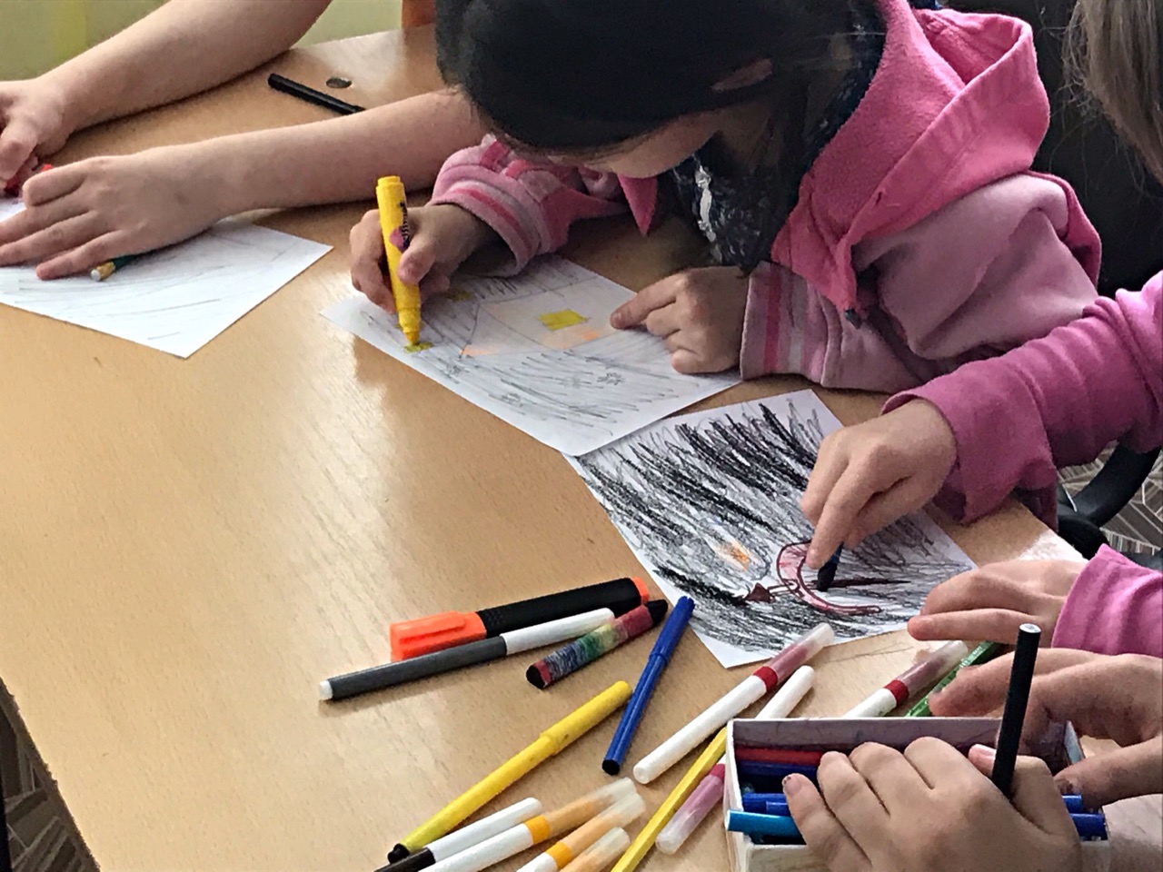 Музыкальная терапия проходила в несколько этапов. Сначала воспитанницам приюта было предложено нарисовать свой страх под композицию Л. ван Бетховена «Симфония № 40». Далее под весёлую «Музыкальную шутку» И.С. Баха девочки дорисовывали смешной элемент: несуразные очки, балетную пачку, забавные бантики и яркие шарики, тем самым делая свой страх не таким уж и пугающим. Следующим этапом был рисунок -  избавление от страхов -  под радостную и легкую композицию П.И.Чайковского «Венский вальс».