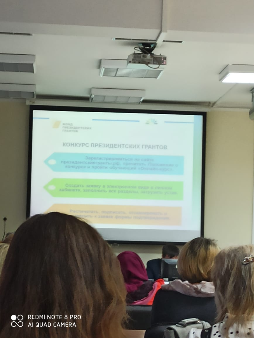 7 ноября 2019 года магистранты 2 курса (44.04.01 Педагогическое образование, направленность (профиль) Менеджмент в образовании и культуре) с преподавателями кафедры Теорий и методик начального образования посетили бесплатный обучающий семинар  по вопросам подготовки к первому конкурсу президентских грантов 2020 года. Прием заявок которых осуществляется с 14 октября по 25 ноября 2019 года.