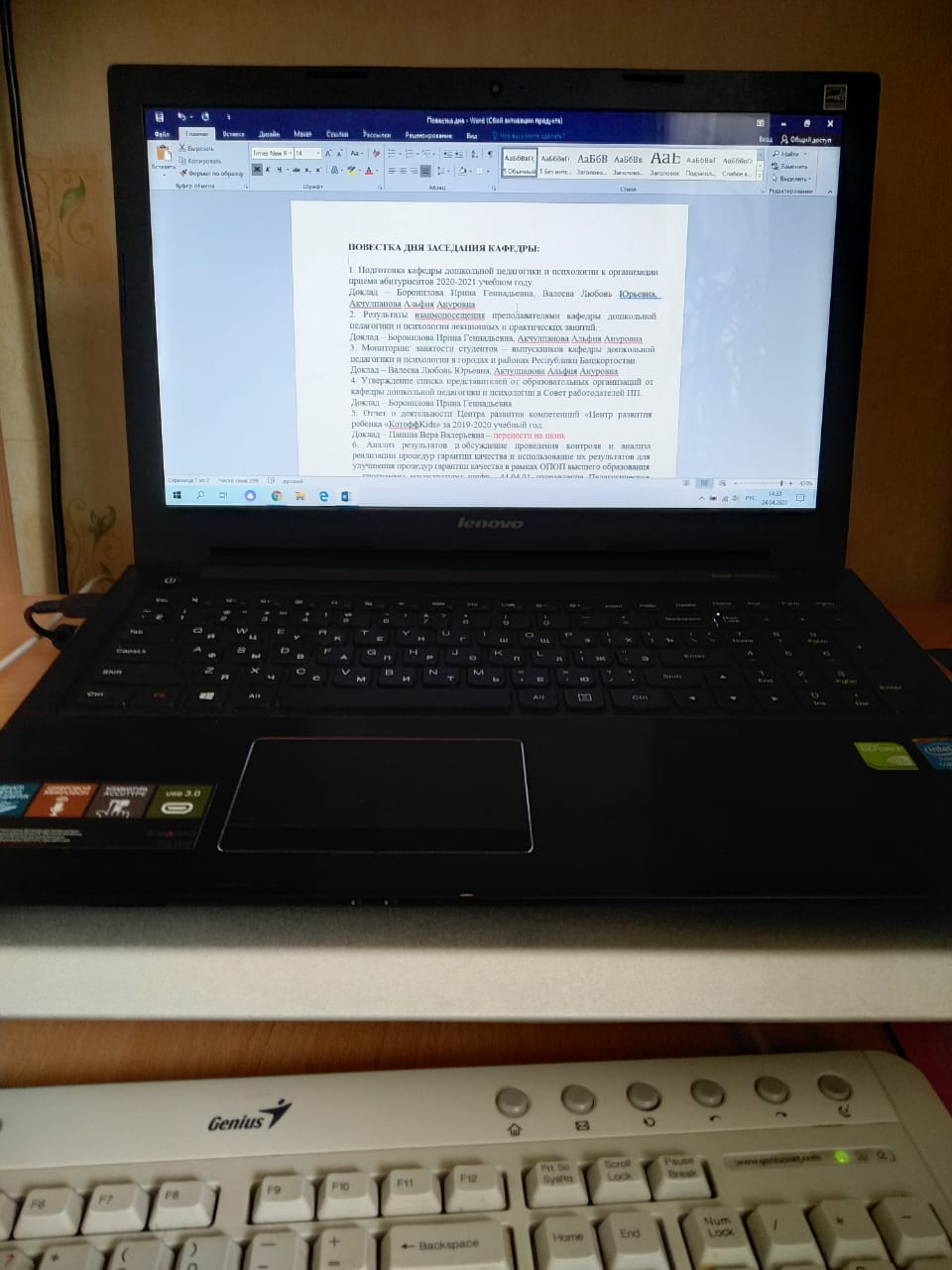 23 апреля 2020 года с 16.00 прошло заседание кафедры дошкольной педагогики и психологии.