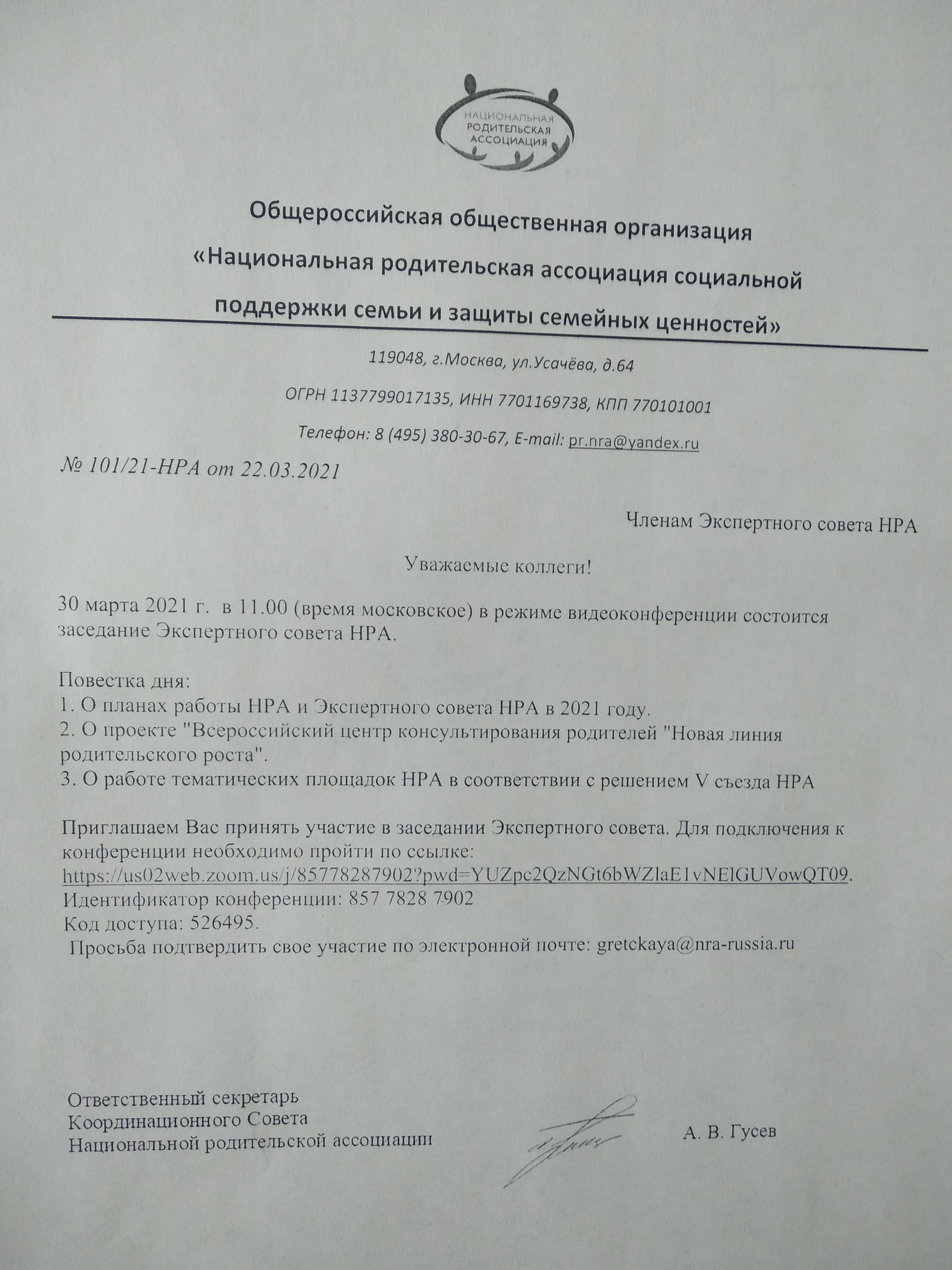 30 марте 2021 г. зав. кафедрой дошкольной педагогики и психологии, член  Экспертного совет Общероссийской общественной организации  "Национальная родительская ассоциация социальной поддержки семьи и защиты семейных ценностей" приняла участие в заседании Экспертного совета НРА. В ходе заседания обсуждался проект Всероссийского центра консультирования родителей.