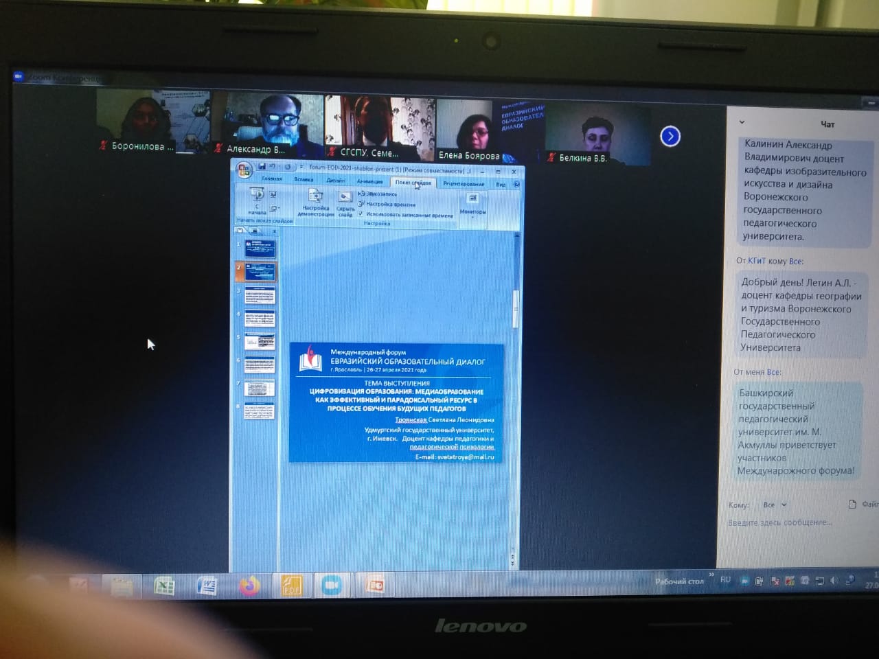 Боронилова Ирина Геннадьевна, заведующий кафедрой дошкольной педагогики и психологии ФГБОУ ВО «Башкирский государственный педагогический университете им. М. Акмуллы», Республика Башкортостан приняла участие в Международном форуме «ЕВРАЗИЙСКИЙ ОБРАЗОВАТЕЛЬНЫЙ ДИАЛОГ» с темой: «Центр развития компетенций «Педагог дошкольного образования» — новый формат профессиональной подготовки современного педагога дошкольного образования» в секции "Эффективные модели и практики в подготовке педагогов к реализации воспитательных функций в сфере образования". Форум проводится при поддержке Министерства просвещения Российской Федерации и Правительства Ярославской области, Департамент образования Ярославской области, является авторитетной дискуссионной площадкой для обсуждения государственной политики в сфере образования и представления лучших практик обучения и воспитания детей.