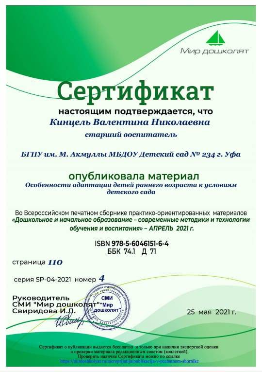 Шабаева Г.Ф. к.п.н., доц. кафедрыДПиП, магистрант 2курса Кинцель В.Н. в составе редакционной коллегии портала "Мир дошколят"  г. Старый Оскол редакционно-издательского совета СМИ "Мир дошколят" . Так же опубликовали статьи во Всероссийском сборнике  практико-ориентированных материалов "Дошкольное и начальное образование - современные методики и технологии обучения и воспитания".
