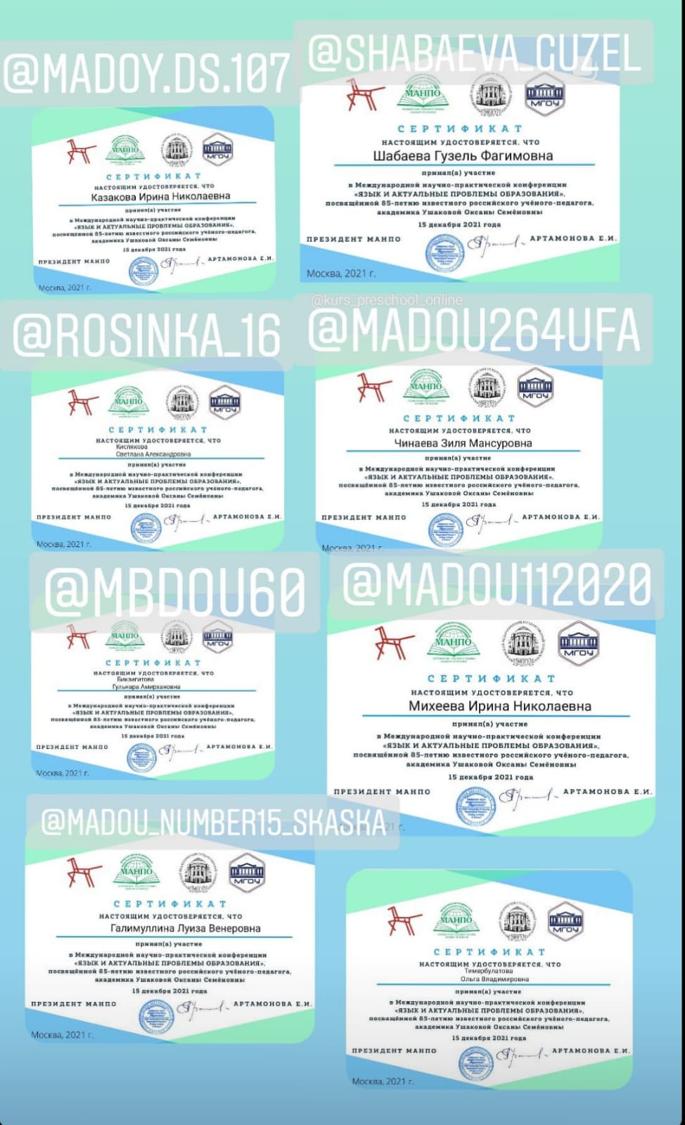 к.п.н., доцент кафедры ДПиП Акмуллинского университета Шабаева Гузель Фагимовна с коллегами инновационных площадок кафедры ДПиП приняли активное участие в Международной научно-практической конференции г.Москва РАО "Язык и актуальные проблемы образования". Шабаева Г.Ф. выступила с докладом.