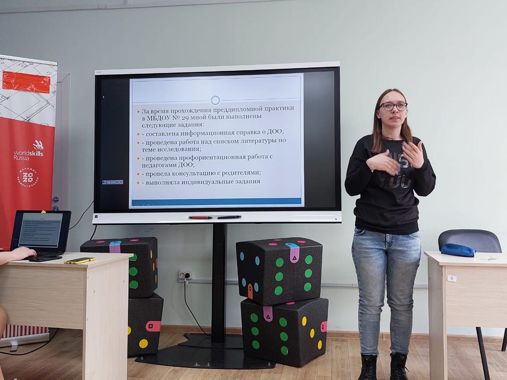 На кафедре Дошкольной педагогики и психологии прошла заключительная конференция по производственной преддипломной практике со студентами 4 курса очной формы обучения. В ходе конференции были представлены итоги исследовательской деятельности выпускных квалификационных работ, обозначены ориентиры для развития профессиональной деятельности.