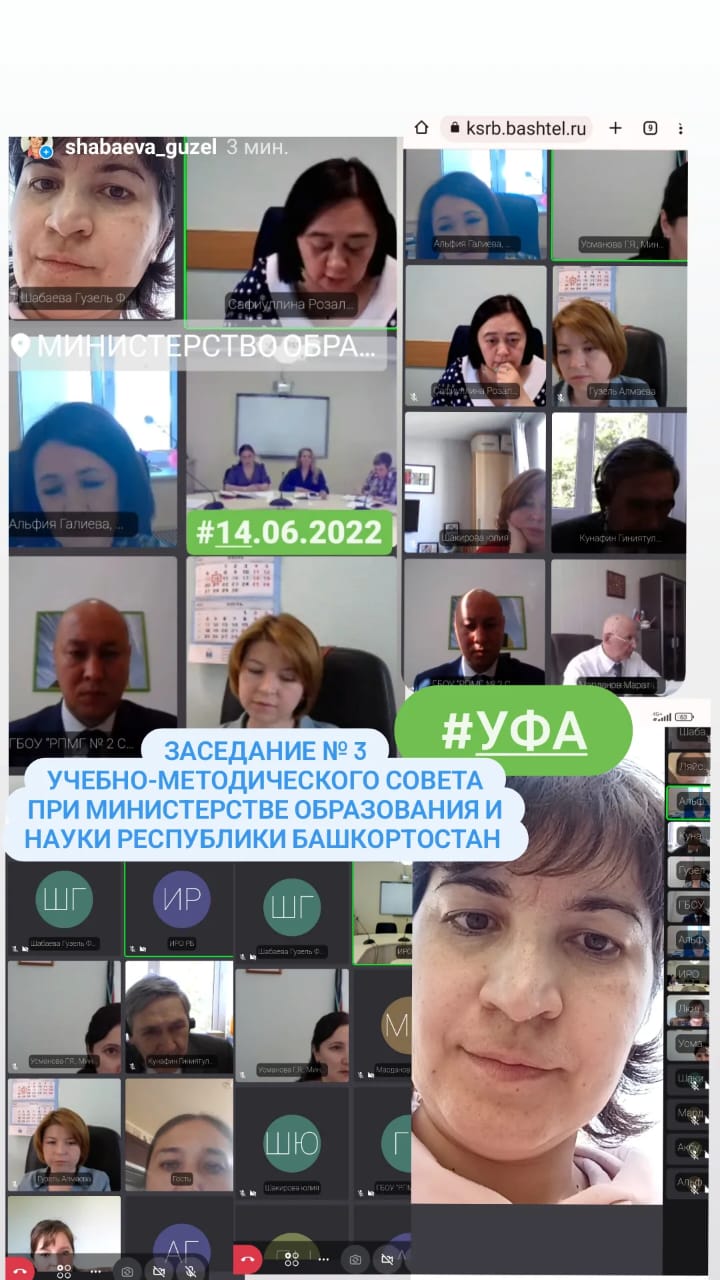 14.06.2022 член учебно-методического совета при Министерстве образования и науки РБ Шабаева Гузель Фагимовна к.п.н., доцент кафедры ДПиП Акмуллинского университета приняла участие в заседании № 3 УЧЕБНО-МЕТОДИЧЕСКОГО СОВЕТА ПРИ МИНИСТЕРСТВЕ ОБРАЗОВАНИЯ И НАУКИ РЕСПУБЛИКИ БАШКОРТОСТАН,