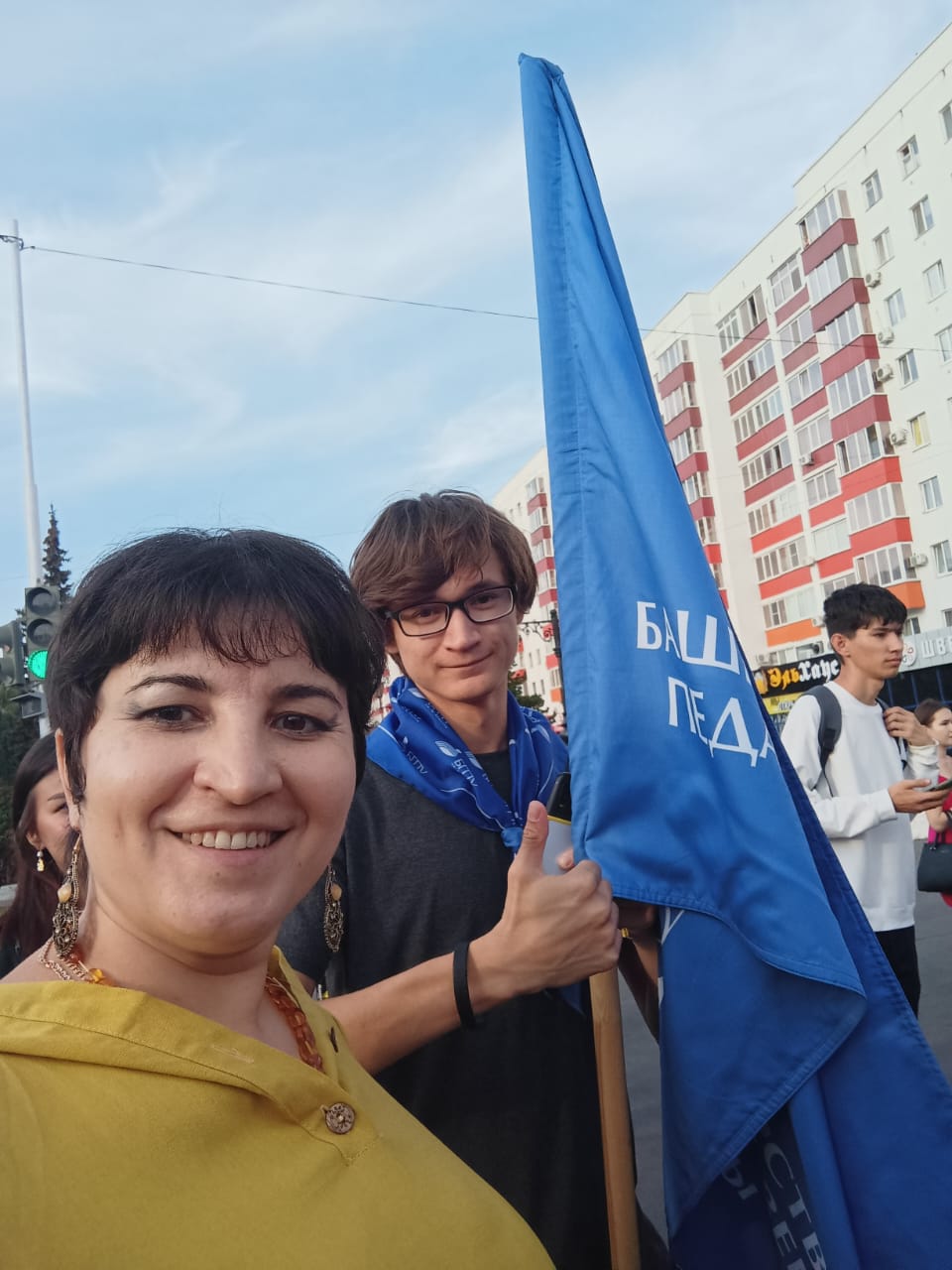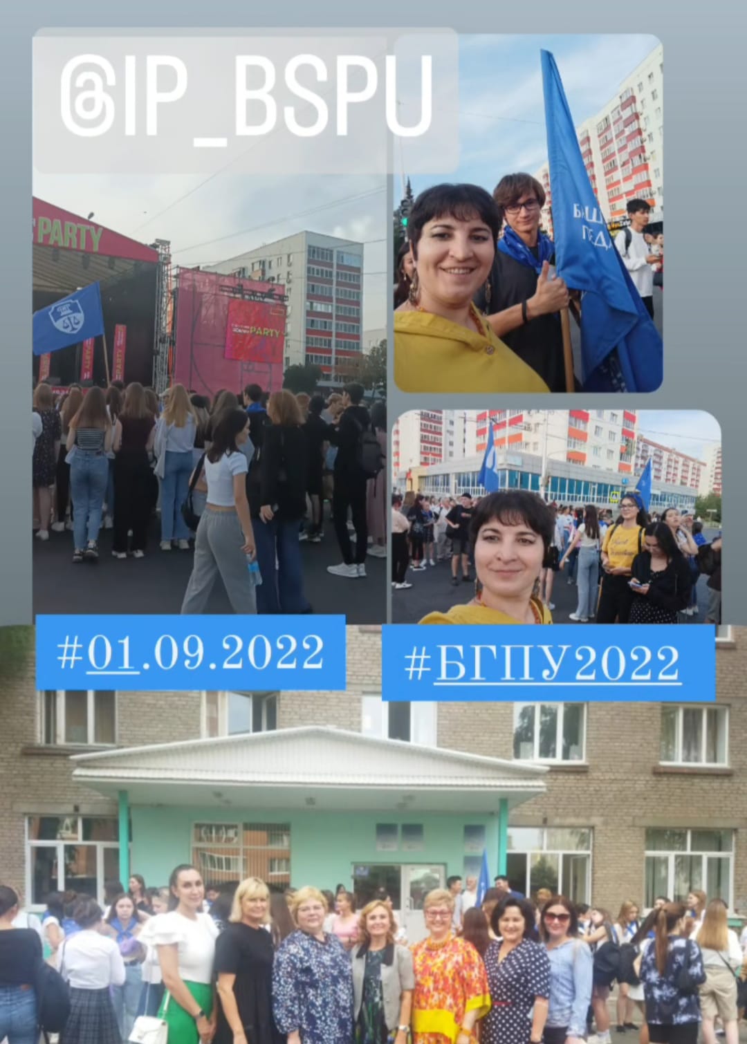 1 сентября 2022г. студенты 1 курса, ППС  кафедры дошкольной педагогики и психологии ИП БГПУ им.М.Акмуллы: зав.каф., профессор Исламова З.И, директор ИП, доц каф ДПиП Боронилова И.Г., доц. Шабаева Г.Ф., ст.пр. Пилипенко Е.А., зам. директора  по учебной работе пр. Калмыкова Т.С. организовали и приняли участие в шествии первокурсников на студенческом фестивале "Знания PARTY", который   прошел на площади Салавата Юлаева:   дискотека от ведущих диджеев Уфы, так же праздничный концерт с YALFY,  артист лейбла "Black Star" – Natan.