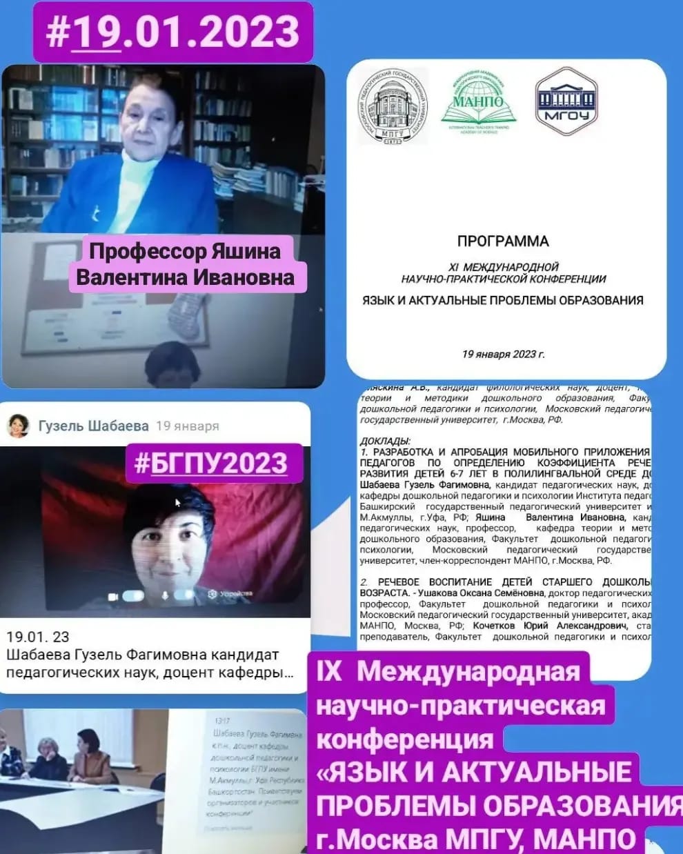 19.01.23г. Шабаева Гузель Фагимовна кандидат педагогических наук, доцент кафедры дошкольной педагогики и психологии БГПУ выступает с докладом в рамках IХ  Международной научно-практической конференции «ЯЗЫК И АКТУАЛЬНЫЕ ПРОБЛЕМЫ ОБРАЗОВАНИЯ», г.Москва