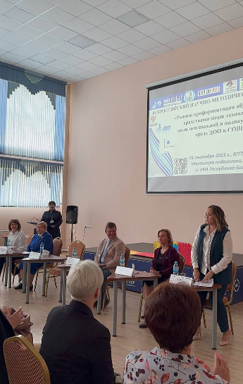 Торжественное открытие Всероссийского семинара и научно-методической выставки осуществила проректор на научно-исследовательской работе Гареева С.А. Выступила с докладом и характеристикой проектов Акмуллинского унивtрситета по реализации steam технологий в полилингвальной и поликультурной среде на базе технопарка, мастерских, ЦРК, кванториума, выполнение гос заданий МИНПРОС РФ, реализации приоритетных направлений на базе БГПУ, В ЦРК "Акмуллинская академия развития детей и семейного образования СОТЫ", на базах инновационных площадок кафедры ДПиП и сетевых партнеров ВУЗа.