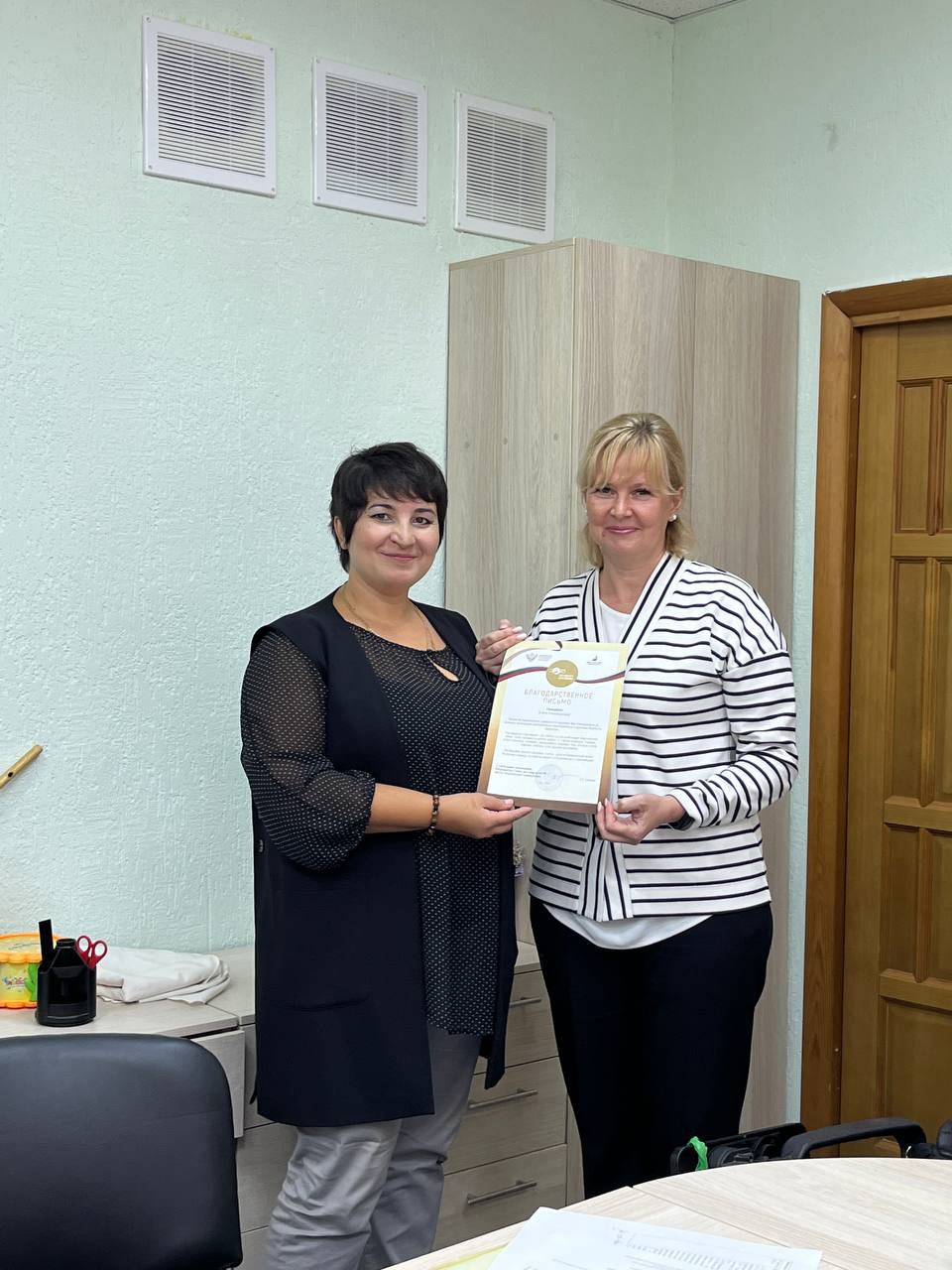 В соответствии с протоколом ведения заседания кафедры обсудили вопросы и успешно прошло вручение благодарственного письма от ректора Сагитова С.Т. за проведение воспитательных мероприятий на кафедре старшему преподавателю кафедры ДПиП, магистру образования Пилипенко Елене Александровне и к.п. н., доц., и.о. завед. каф. ДПиП Шабаевой Гузель Фагимовне