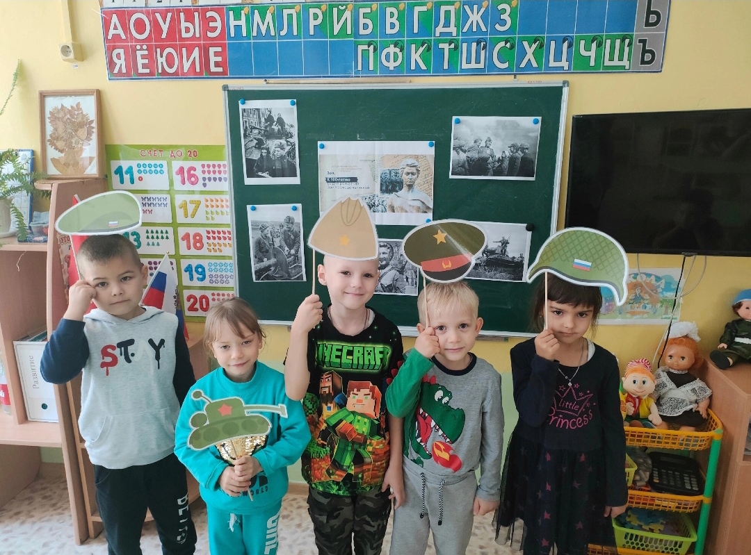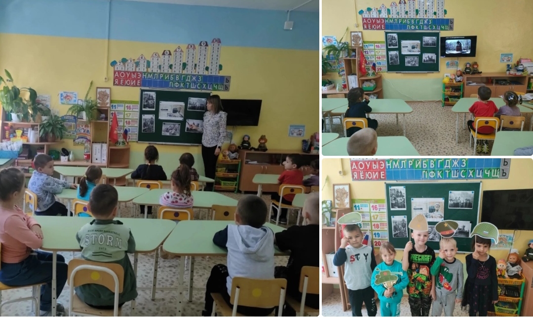 В процессе занятия детям рассказали о юных героях, которые  плечом к плечу со взрослыми встали на защиту нашей страны. Лёня Голиков, Валентин Котик, Зоя Космодемьянская и многие другие стали символом героизма, мужества и патриотизма советского народа в годы Великой Отечественной войны против фашизма.