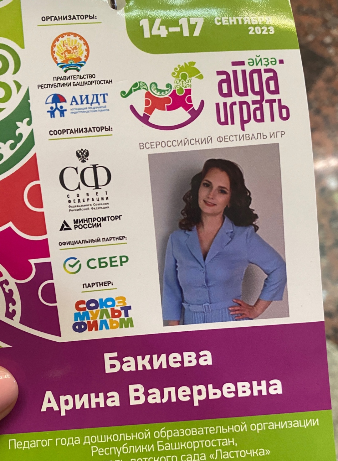 БАКИЕВА АРИНА ВАЛЕРЬЕВНА- Победитель республиканского конкурса «Педагог года дошкольной образовательной организации Республики Башкортостан», г. Уфа 2023 г., которая будет представлять Республику Башкортостан на заключительном этапе конкурса РФ в г.Волгоград.