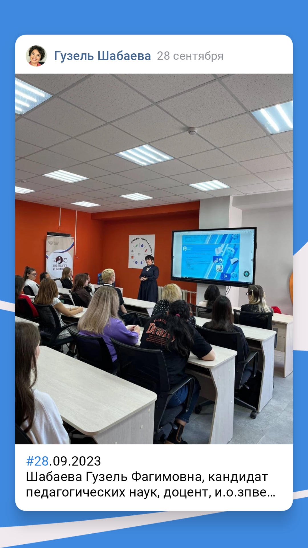 Барашкова (Тихонова) Александра Павловна , тьютер по воспитательной работе кафедры ДПиП Института педагогики БГПУ имени Мифтахетдина Акмуллы, студентка 3 курса Гр. ПО_ДО-31-21 совместно с Шабаевой Гузель Фагимовной, к.п.н., доц., и.о. заведующего кафедрой ДПиП Института педагогики БГПУ имени Мифтахетдина Акмуллы приняли активное участие в роли лекторов в формате "Наставник - наставляемый" в год Педагога и Наставника _2023 во