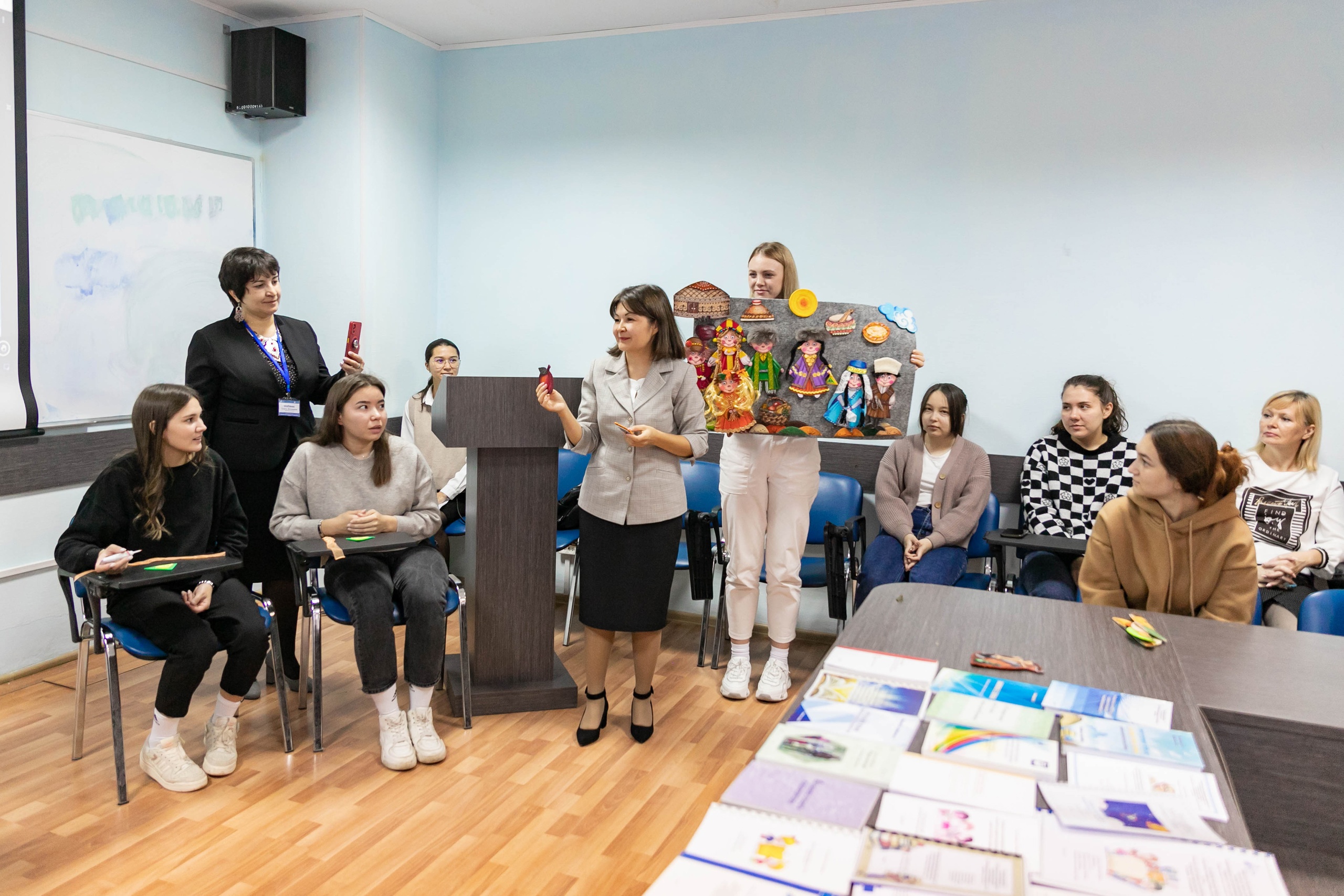 Для студентов Гульсина Ишбаева провела мастер-класс по технологии, где  на наглядном примере показала, как с помощью войлокбум можно в сказочной форме познакомить детей с фольклорным праздником «Сумбуля».
