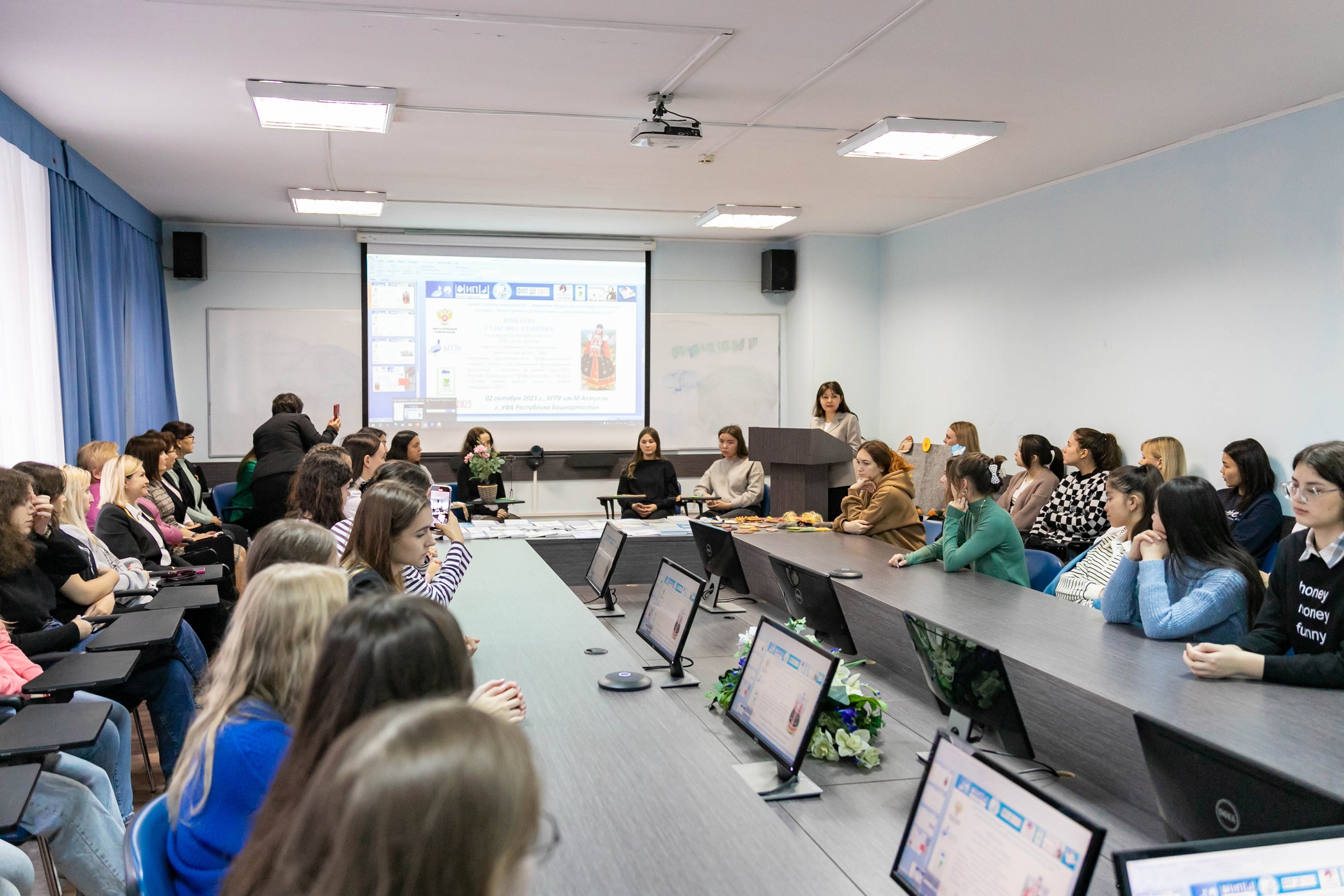 2 октября в Институте педагогики БГПУ имени М. Акмуллы состоялась встреча с лауреатом Всероссийского профессионального конкурса «Лучший учитель родного языка и родной литературы – 2023» Гульсиной Ишбаевой. Конкурс профессионального мастерства прошел в Карачаево-Черкесской Республике, где Гульсина Ишбаева стала победителем в номинациях «Народное голосование за лучший урок» и «Лучшая медиавизитка».