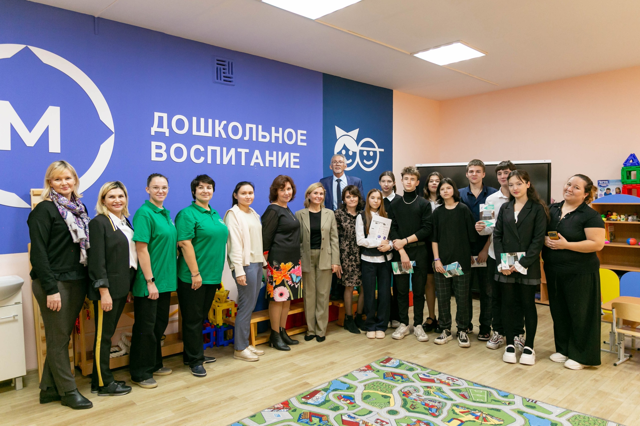 После учебных занятий, участники проекта прошли экскурсией по кафедре дошкольной педагогики и психологии Института педагогики. Школьники познакомились с практико-ориентированной площадкой, где будут проходить профессиональные пробы по профессии воспитателя. В программе данной площадки – знакомство с функциональными обязанностями педагога детского сада, возможности карьерного роста, демонстрация работы с инновационным интерактивным оборудованием (инновационная технология «Наураша», интерактивные кубы, песочницы, робототехника). На профпробе по профессии восптателя школьники смогут научиться разрабатывать технологическую карту фрагмента занятий с детьми.