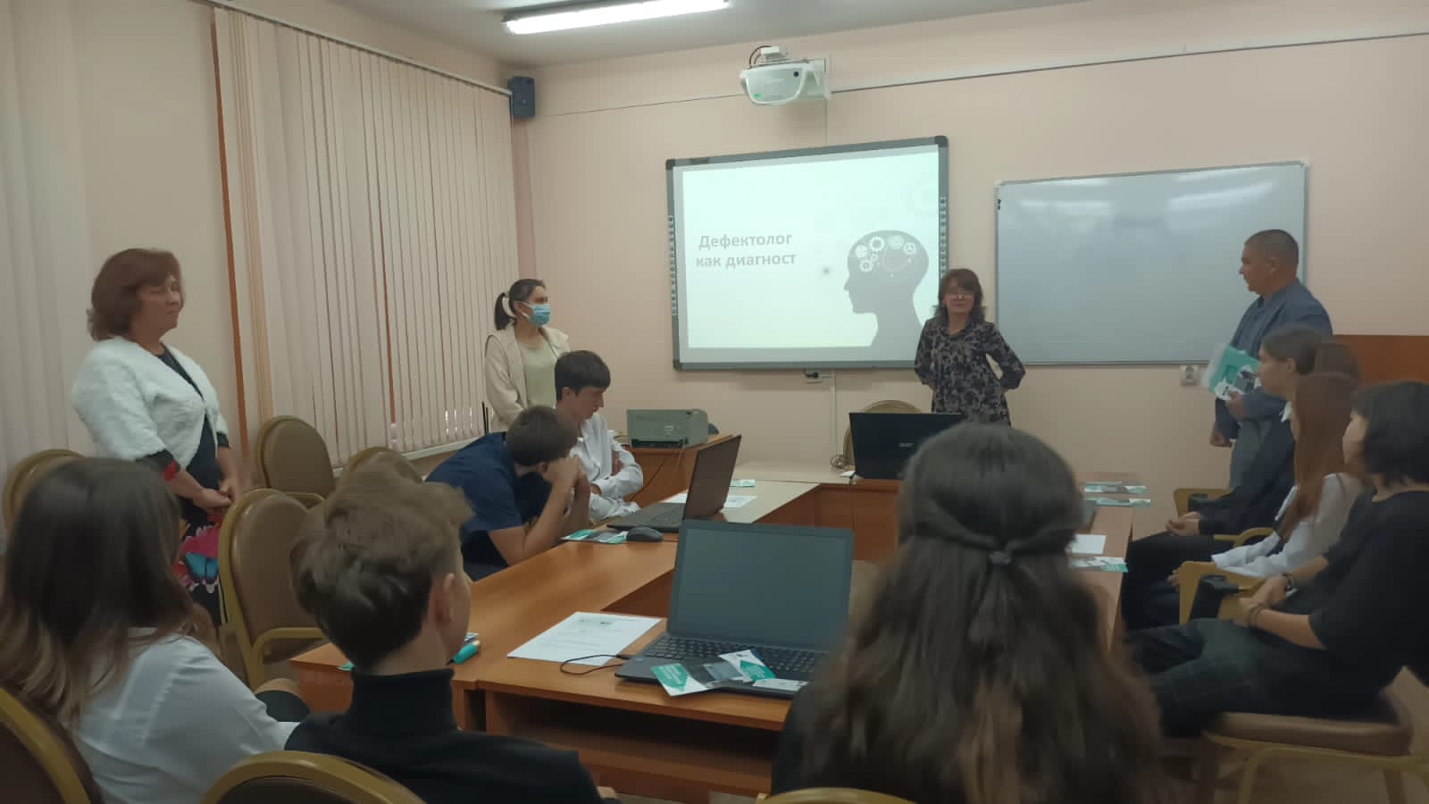 Учащиеся знакомились с профессией дефектолога. Под руководством преподавателей школьники узнали, как проводится психолого-педагогическое обследование психического развития ребенка с ограниченными возможностями здоровья, как создаются интерактивные игры с использованием компьютерных средств, познакомились с информативно-просветительской работой дефектолога и даже попробовали создать информационный буклет. На занятии ребятам показали, какие знания и навыки необходимы для овладения этой профессией.