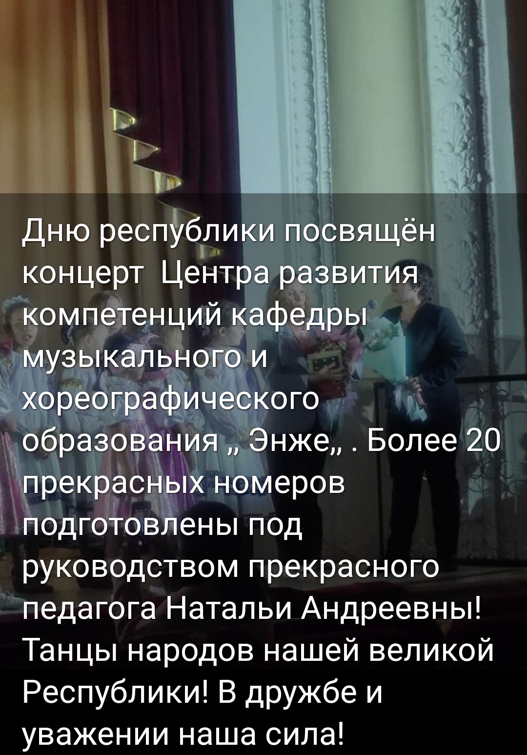 10.10.2023г. Директор Института педагогики, к.п.н., доц. Боронилова И.Г., с ППС кафедры ДПиП, и.о. заведующего каф. ДПиП, к.п.н., доц. Шабаевой Г.Ф. приняли участие на праздничном концерте "Танец как стиль жизни", организованным кафедрой МиХО Института педагогики БГПУ им.М.Акмуллы ЦРК  Ансамбль Национального Танца "ЭНЖЕ" (зав. каф. Политаева Т.И.).