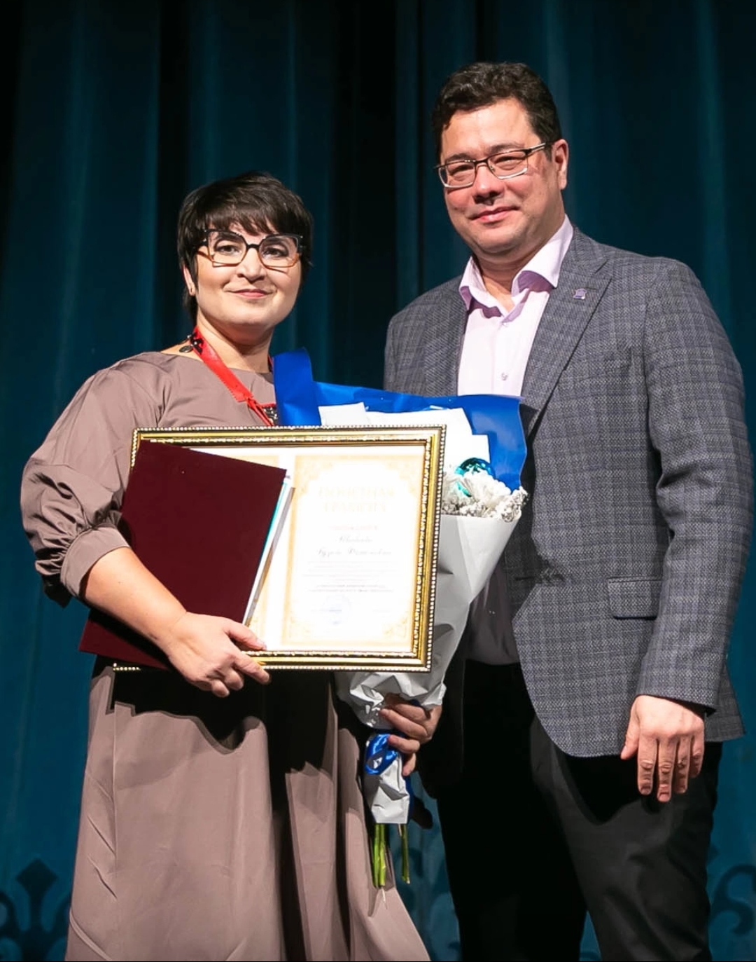 Вручил почетную грамоту Министерства просвещения Российской Федерации и благ письмо Министерства образования и науки Республики Башкортостан Шабаевой Г.Ф.
