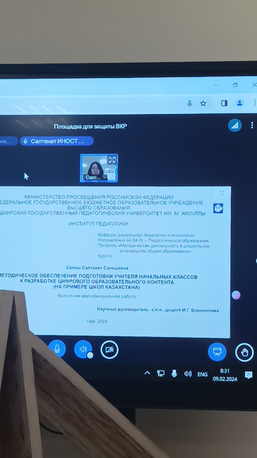 Интервью дала к.п.н., магистрант кафедры ДПиП Института педагогики: "Защита ВКР (магистерской диссертации): волнение, успех, признательность!  Сегодня в Технопарке БГПУ им. Акмуллы состоялась защита выпускных квалификационных работ магистрантами кафедры дошкольной педагогики и психологии, в числе которых была и я. Тема моего исследования: "Методическое обеспечение подготовки учителя начальных классов к разработке цифрового образовательного контента (на примере школ Казахстана)".