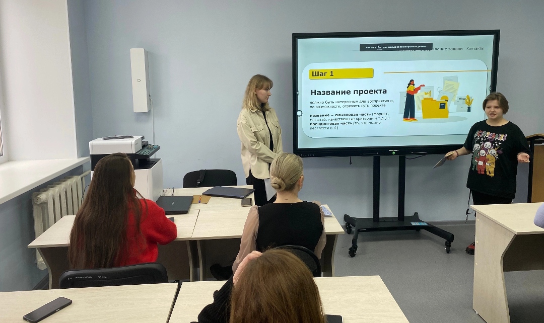 В Институте Педагогики 12 февраля 2024 г. И. О. Проектного офиса - Ильина Вероника Сергеевна и И. О. Заместителя Председателя студенческого совета -  Вакульчик Виктория Валерьевна , зам директора по воспитательной работе Скрябина Л.С. провели  мероприятие по изучению  структуры социального проектирования.
