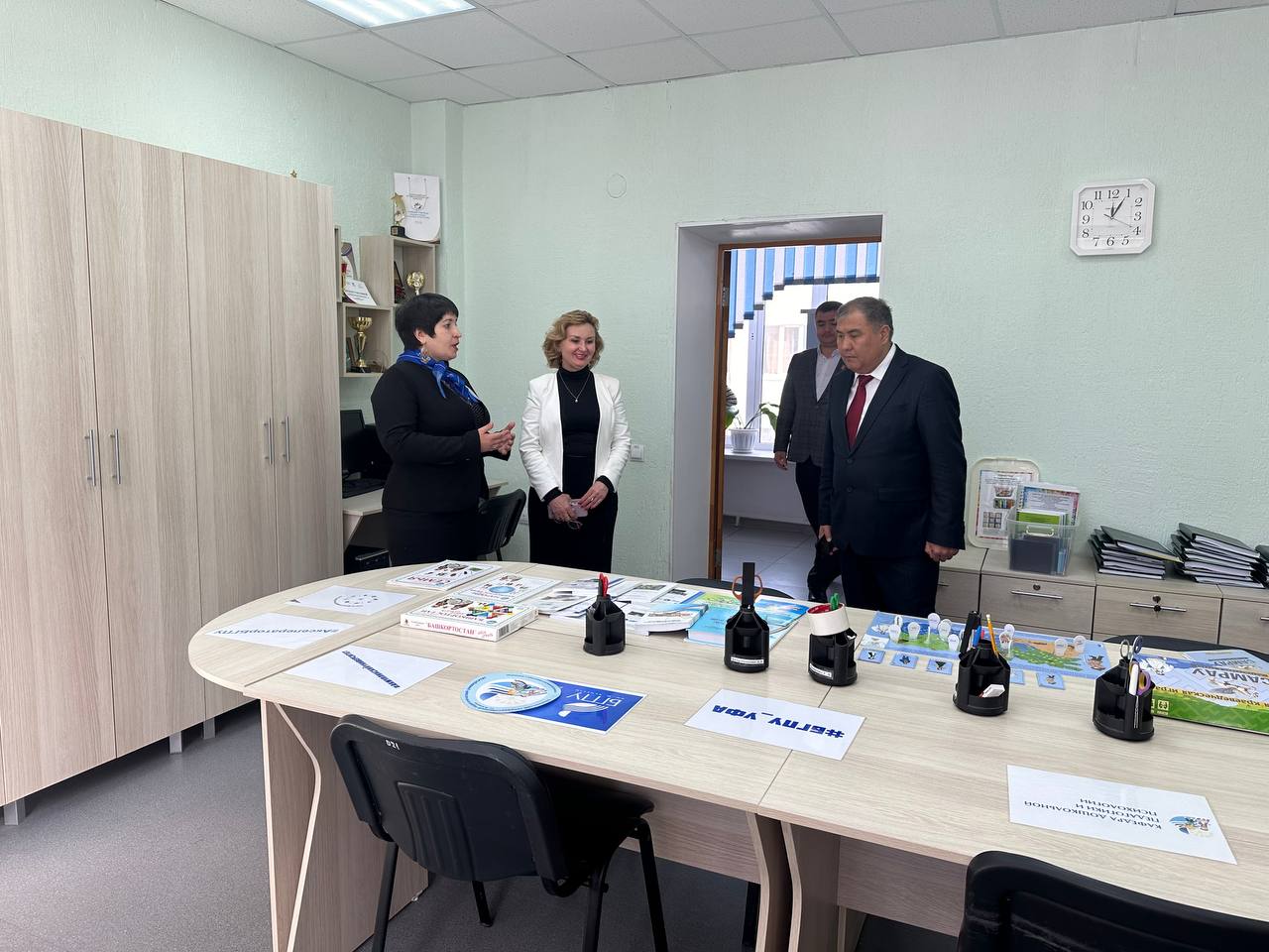 Ректор вуза  Бекмурза Бекболотович Зулуев, заведующая отделом повышения квалификации учителей общеобразовательных школ ОшГПУ Жыпаргул Рахманбердиевна Шербаева, помощник ректора по воспитательной работе и государственному языку ОшГПУ  Мунарбек Бурханович Назымов приехали в Уфу познакомиться с Акмуллинским университетом.