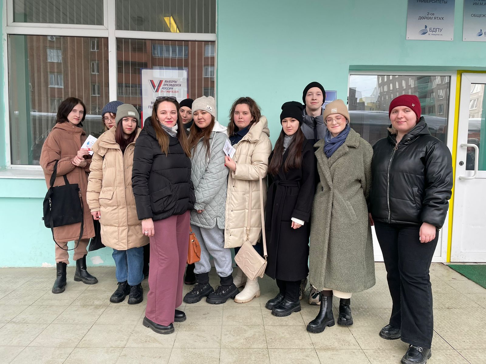 ППС и студенты кафедры ДПиП Института педагогики БГПУ имени Мифтахетдина Акмуллы на Выборах президента Российской Федерации 2024