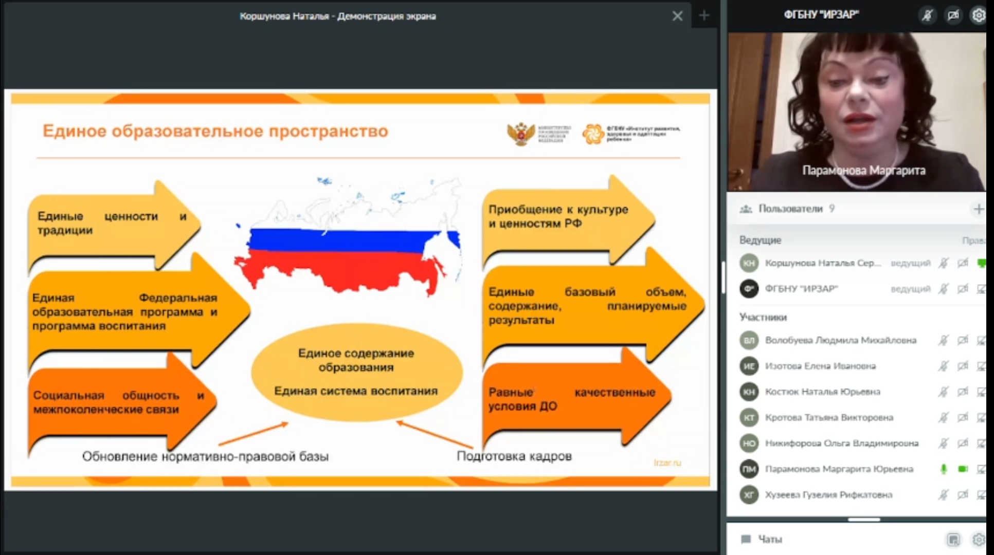 В вебинаре приняли участие представители Министерства просвещения Российской Федерации, сотрудники Лаборатории дошкольного образования ФГБНУ «Институт развития, адаптации и здоровья ребенка», преподаватели кафедры ДПиП Института педагогики Акмуллинского университета.