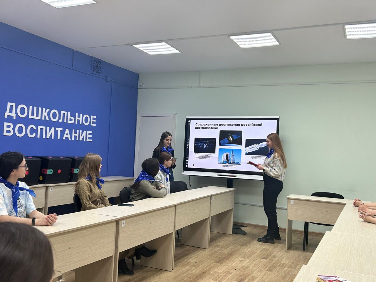 08 апреля 2024 года в рамках просветительских мероприятий Всероссийского проекта «Разговоры о важном!» для студентов, обучающихся по направлению «Педагогическое образование», профиль подготовки «Дошкольное образование», проведен тематический урок: «Я вижу Землю! Это так красиво!» Сегодня мы говорили о космонавтике, о выдающимся человеке Ю. Гагарине. Посмотрели познавательное видео о развитии космонавтики в нашей стране, обсудили научный героизм великих ученых: К.Циолковского, С.Королева. Интересным и необычным стал для нас блиц-опрос по истории развития этой отрасли. Особое внимание уделили вопросу о современном состоянии, открытиях России, заинтересовались вопросом о развитии различных наук на стыке с космической отраслью. «Так, появляются такие направления, как космический туризм, космобиология, астробиология, альтернативная биохимия и др. – всё это является неотъемлемой частью стремления человечества к постоянному совершенствованию и расширению знаний. Каждое новое открытие, каждый проведенный эксперимент в космосе, направлены на то, чтобы принести благо и пользу людям здесь, на Земле!»,- говорит в интервью летчик-космонавт (учёный-командир космического корабля) Сергей Рязанский. Особый интерес вызвал вопрос о возможности применения профессии студентов в космической области. Завершили урок словами-размышлениями на тему красоты Мира, Космоса, развития отрасли для следующих поколений.