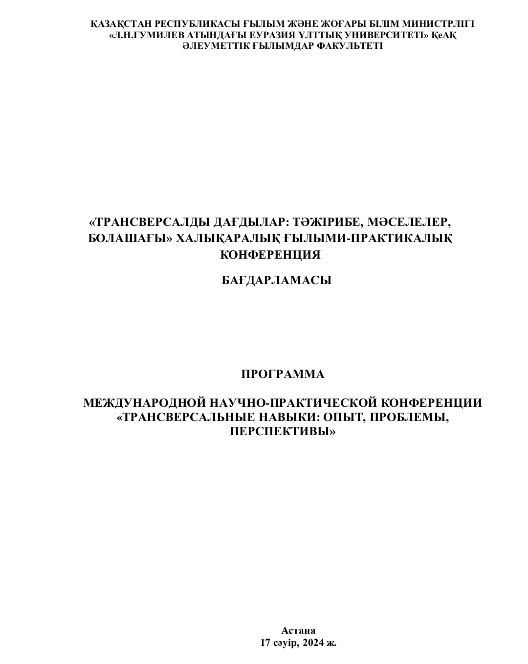 Организаторы: Министерство науки и высшего образования Казахстан  НАО «ЕВРАЗИЙСКИЙ НАЦИОНАЛЬНЫЙ УНИВЕРСИТЕТ ИМ. Л.Н. ГУМИЛЕВА», ФАКУЛЬТЕТ СОЦИАЛЬНЫХ НАУК КАФЕДРА «ПЕДАГОГИКА»