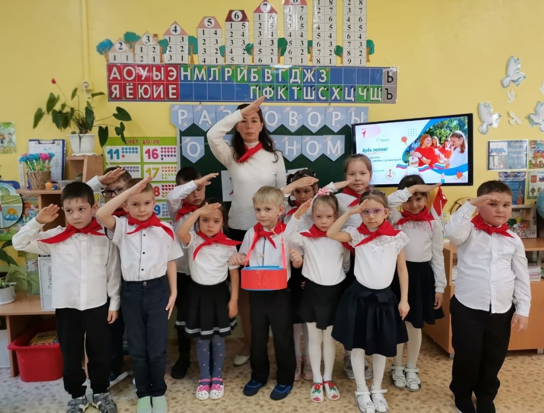 В условиях преемственности дошкольного и начального общего образования в рамках Всероссийского образовательного проекта "Разговоры о важном" успешно прошло мероприятие на тему: "Будь готов! Ко дню детских общественных организаций" в группе "Лилия" МАДОУ ЦРР ДС 16 Росинка г. Благовещенск
