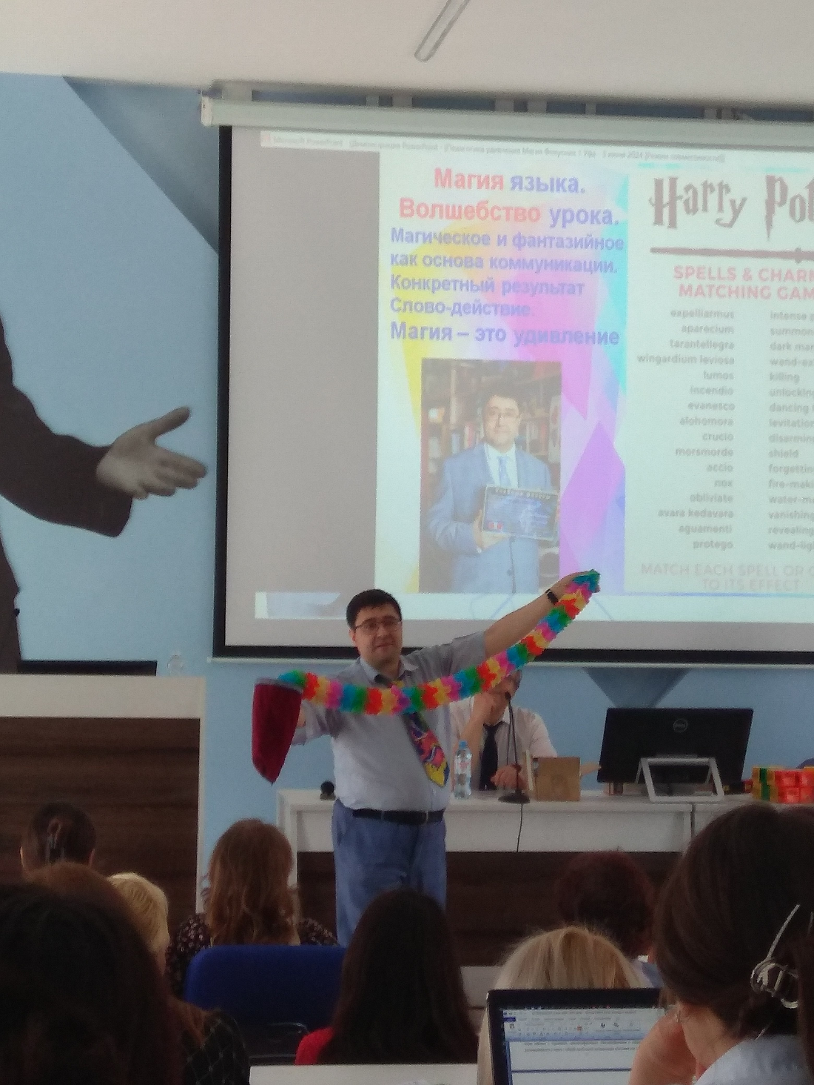 03.06.2024 преподаватели кафедры дошкольной педагогики и психологии БГПУ им М. Акмуллы Пилипенко Е.А., Сыртланова Н.Ш. стали участниками семинара «Педагогика удивления и ёе роль для практики преподавания английского языка на всех уровнях обучения», который вёл канд.пед. наук, финалист конкурса Учитель года Москвы, автор, вице-президент MELTA, исполнитльный директор NATE П.А. Степичев (Москва). Слушатели семинара стали непосредственными участниками разработанных, запатентованных авторских игр (ГрамИКи, пазлы-пятнашки, английское  лото и т.д.), направленных на обучение и легкое усвоения английского языка на всех ступенях образования. Семинар в полной мере соответствовал своему названию – «Педагогика удивления»  А это дверь в новую реальность дошкольного образования. По окончанию семинара участники получили сертификаты.