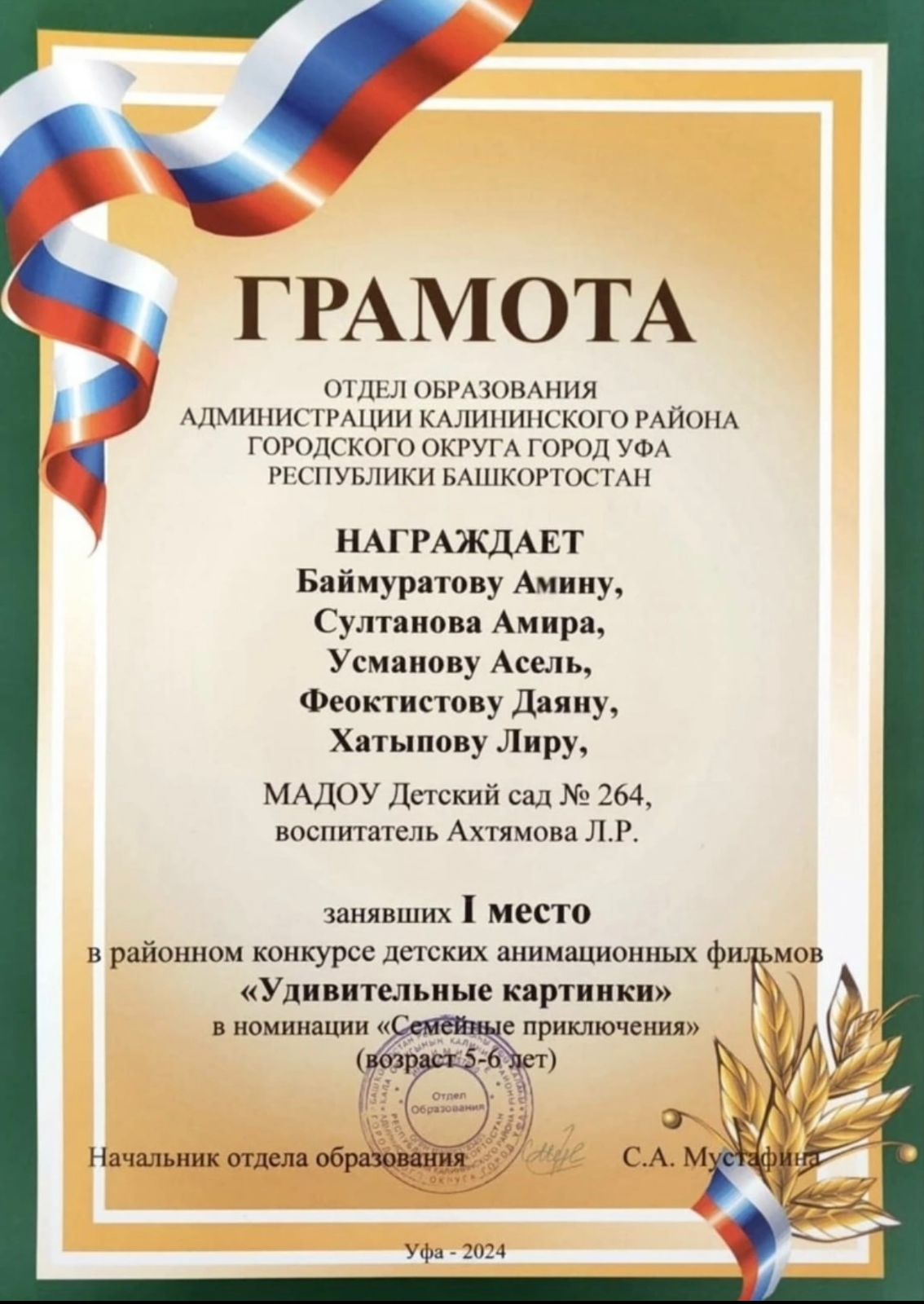 Инновационная площадка Акмуллинского университета МАДОУ д/с 264 г.Уфа одержала победу в районном конкурсу анимационных фильмов "Удивительные картинки".