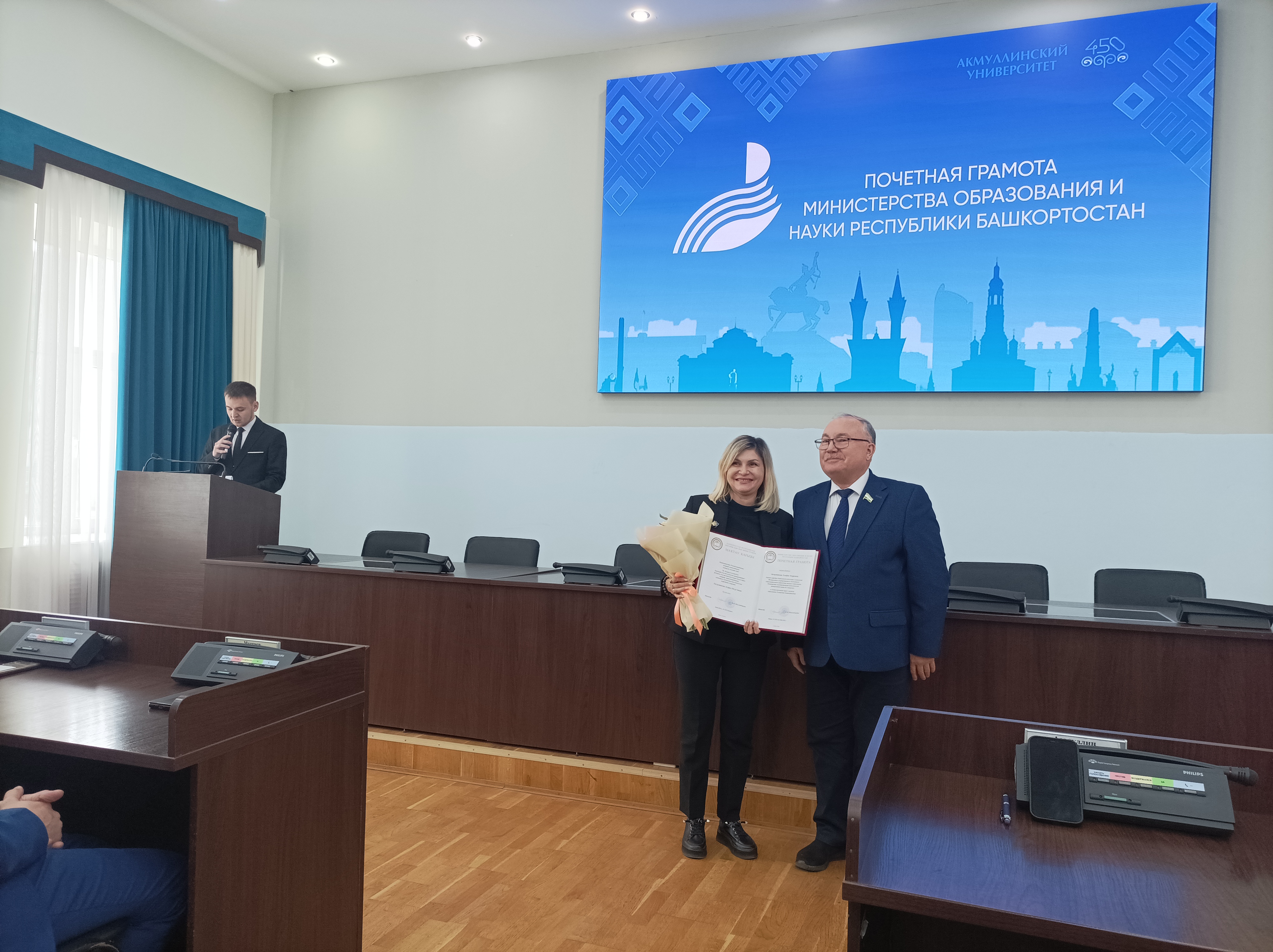 Акчулпанова А.А. доц. награждена Почетной грамотой Министерства образования и науки Республики Башкортостан