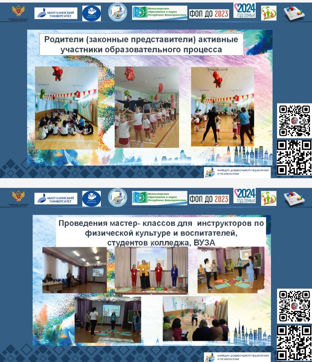Представили Республику Башкортостан г. Уфа БГПУ им М.Акмуллы с научно-методический, практико-ориентированным опытом университета на базе центров развития компетенций "Педагог дошкольного образования" и ЦРК  "Акмуллинская академия  развития детей детей и семейного образования СОТЫ"  "Опыт инновационной деятельности организации физического развития  в системе: Семья - ДОО - Школа - Колледж - Вуз - производство в полилингвальной среде",  с инновационным  опытом работы по проекту