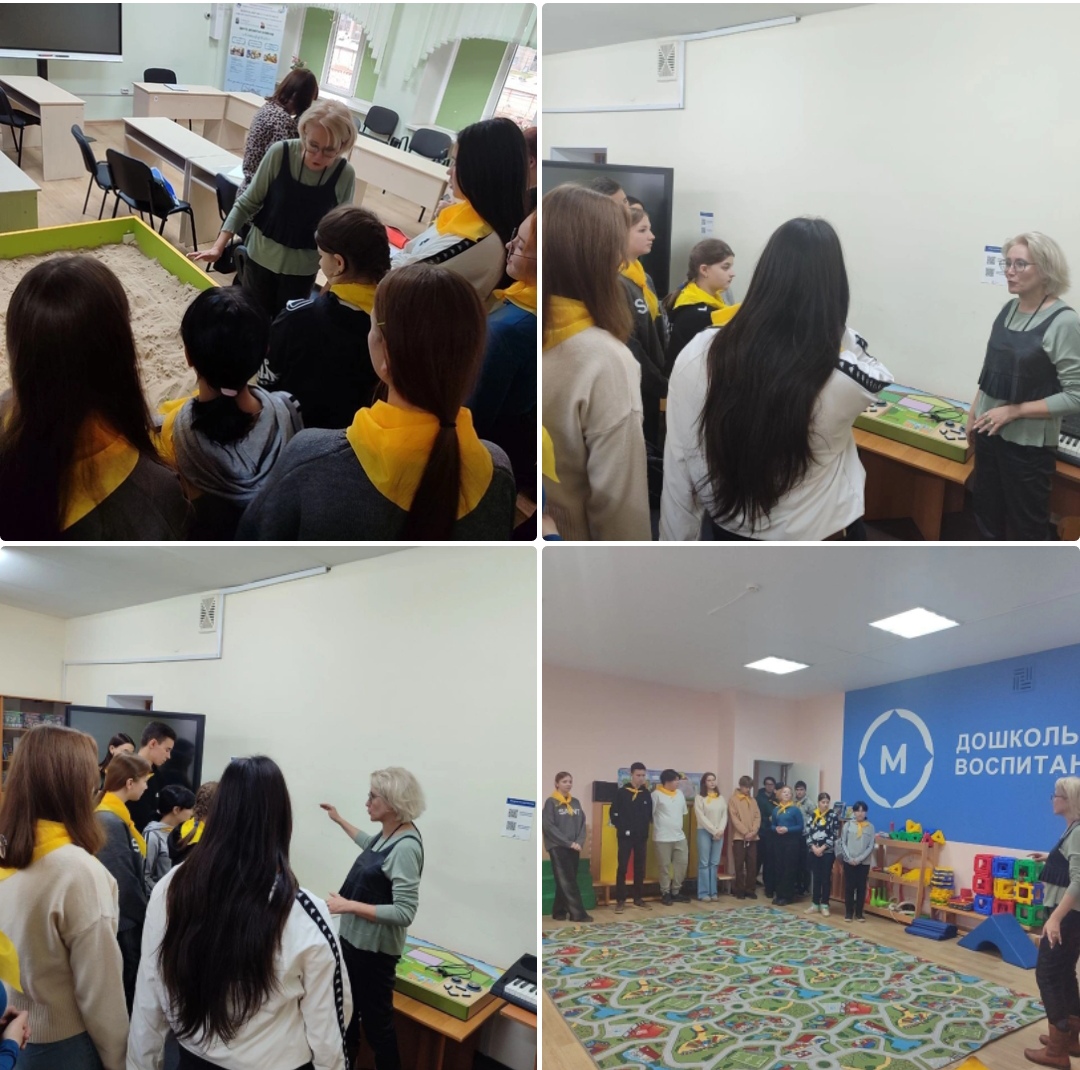 В ходе профориентационной работы к.п.н., доцент Сыртланова Нэлли Шамильевна ознакомила с подготовкой студентов в системе дошкольного образования, были проведены интерактивные игры на специальном  оборудовании: интерактивный пол, интерактивные песочницы, робототехника и материалы Воскобовича.
