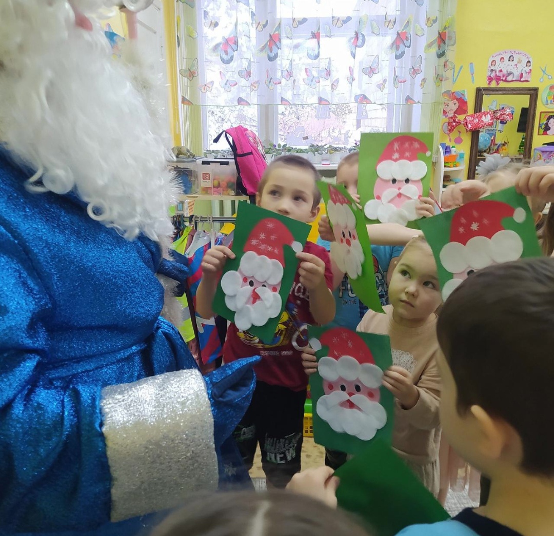 Дети нарядили ёлочку в группе, водили хороводы и рассказали о том, как готовятся к празднованию Нового года дома. Выполнили аппликацию и нарисовали рисунки, чтобы подарить их Дедушке Морозу.