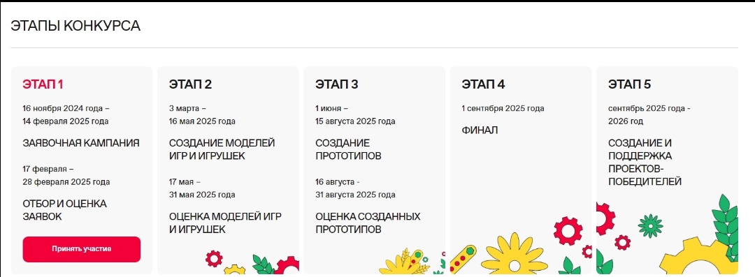 В конкурсе могут участвовать как профессиональные производители, так и независимые авторы с 14 лет. Конкурс пройдет в пяти номинациях: «лучшая сюжетно-образная игрушка», «настольная игра», «техническая и технологическая игрушка», «конструкторы и сборные модели», «мультимедийный проект». На первом этапе будет отобрано 45 проектов, которые пройдут наставничество и получат рекомендации по дизайну и материалам. 15 проектов в каждой номинации выйдут в следующий этап и смогут создать рабочую версию.