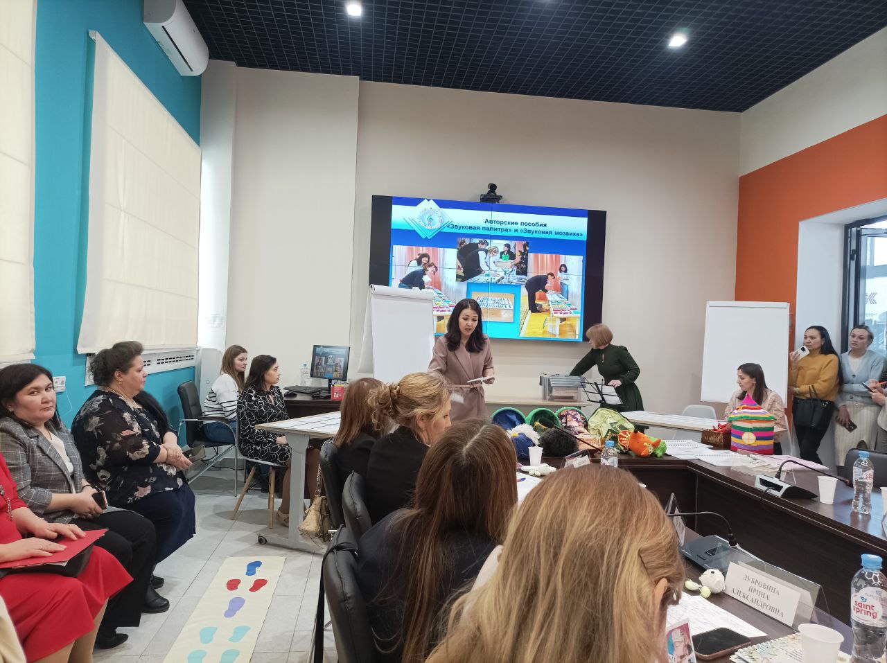 Учитель-логопед Саитгареева Екатерина Михайловна продемонстрировала мастер-класс по использованию игровой технологии с мякишем как средства развития сенсорной интеграции. Данная игровая технология позволяет реализовать задачи в контексте ФОП ДО, развивает мелкую моторику у детей дошкольного возраста, а также зрительную, слуховую и др.виды памяти.