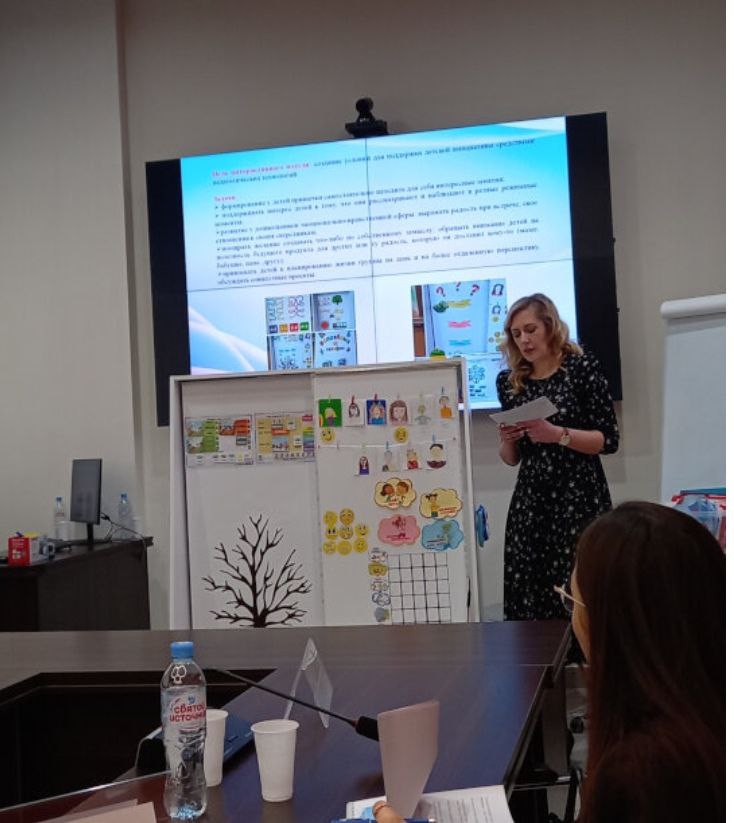 Воспитатель Крот Татьяна Владимировна продемонстрировала мастер-класс по использованию интерактивного модуля «Поддержка детской инициативы». Данный интерактивный модуль способствует развитию познавательной активности детей, эмоционально-нравственной сферы, а также формирует навыки самостоятельной деятельности.