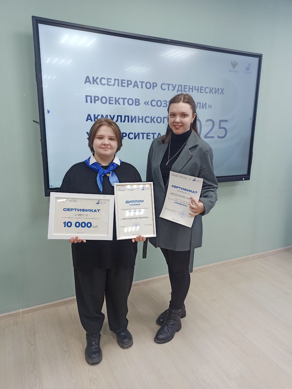 19.02.2025г. завершился  последний этап акселератора студенческих проектов «Созидатели: 2025» БГПУ имени Мифтахетдина Акмуллы , в котором приняли участие студенты и магистранты, преподаватели   кафедры ДПиП Института педагогики Акмуллинского университета, в роли победителей финального этапа :  студент 2 курса ПО-ДО Вакульчик Виктория и магистрант 2 курса, победитель Педагог года, Дмитриева Екатерина.