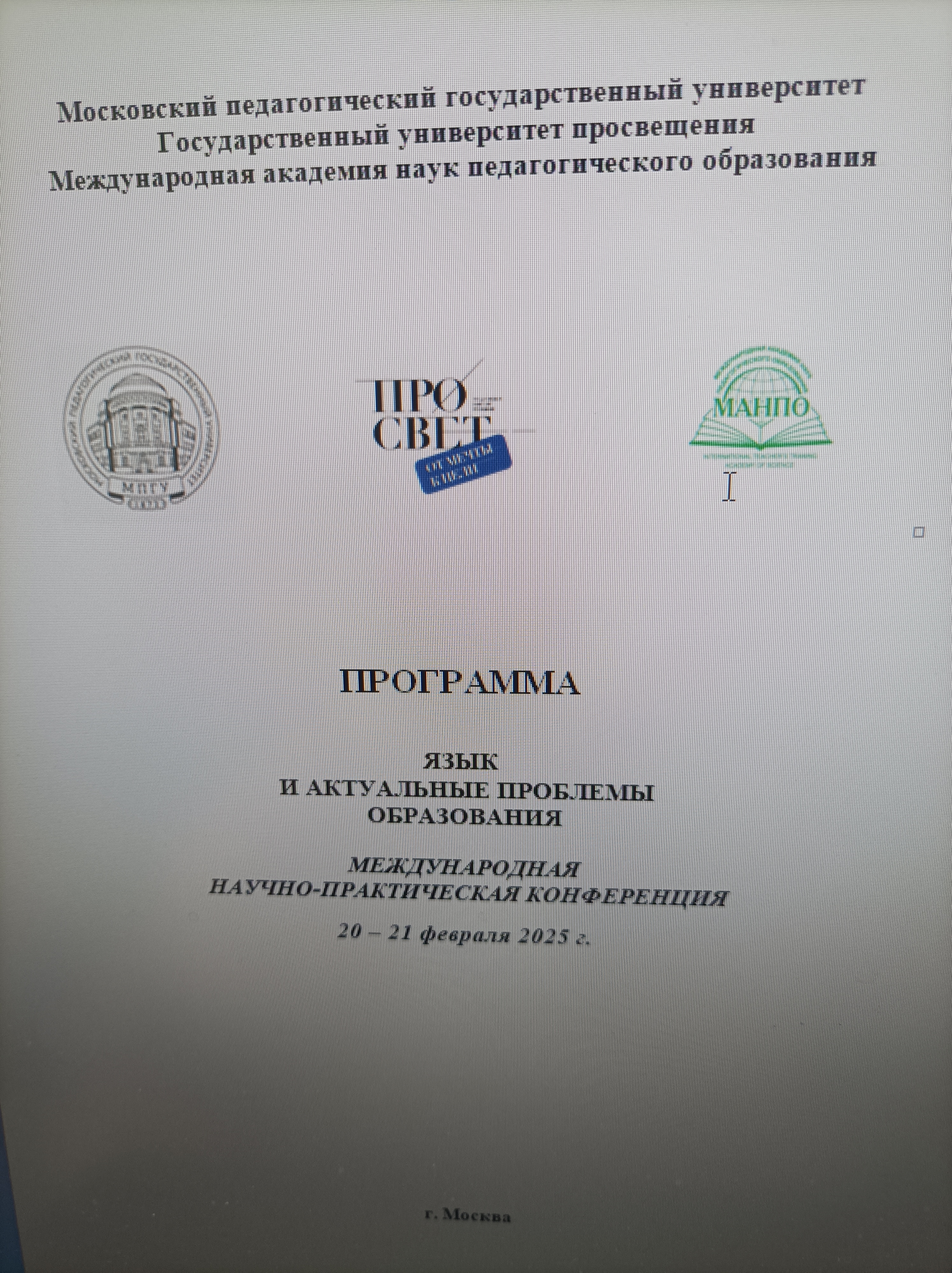 20-21.02.2025 X Международная научно-практическая конференция «ЯЗЫК И АКТУАЛЬНЫЕ ПРОБЛЕМЫ ОБРАЗОВАНИЯ» - 20-21 февраля 2025 года [РИНЦ], г. Москва, МПГУ.