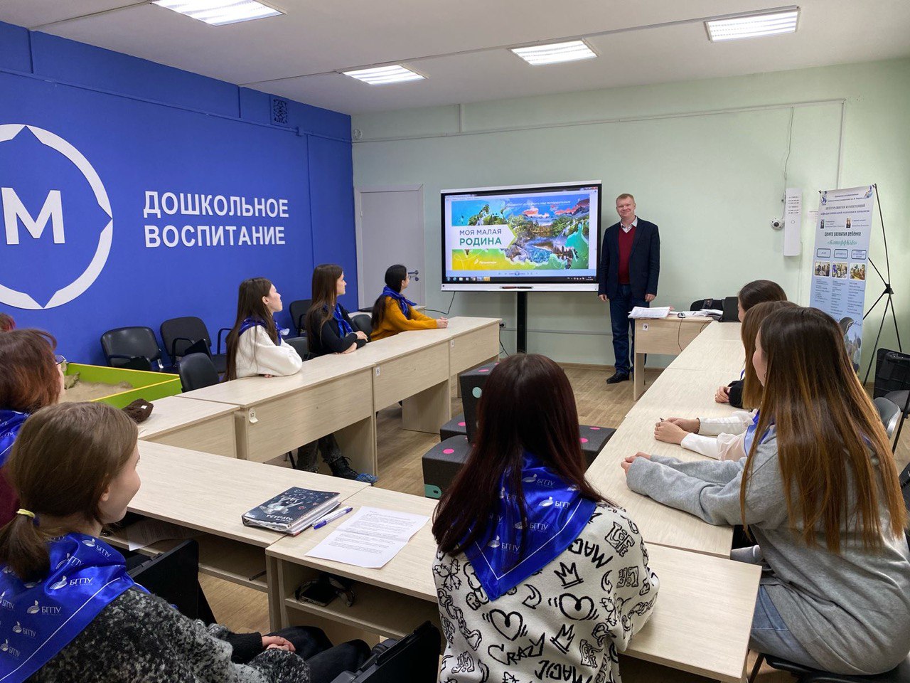 24 февраля 2025 года в рамках просветительских мероприятий Всероссийского проекта «Разговоры о важном!» для студентов, обучающихся по направлению «Педагогическое образование», профиль подготовки «Дошкольное образование» проведен тематический урок: «Моя малая Родина». Сегодня мы говорили о Родине, о нашей малой Родине. О том месте, где мы живем, о месте, с которым связаны историей, культурой, языком, биографиями наших предков. Узнали историю развития нашего региона, о его вкладе в развитие нашей страны. Рассуждали над тем, каким мы видим наш регион в будущем. Занятие помогло нам понять, что от нас зависит многое и наша страна нуждается в наших победах, инициативах и успехах.