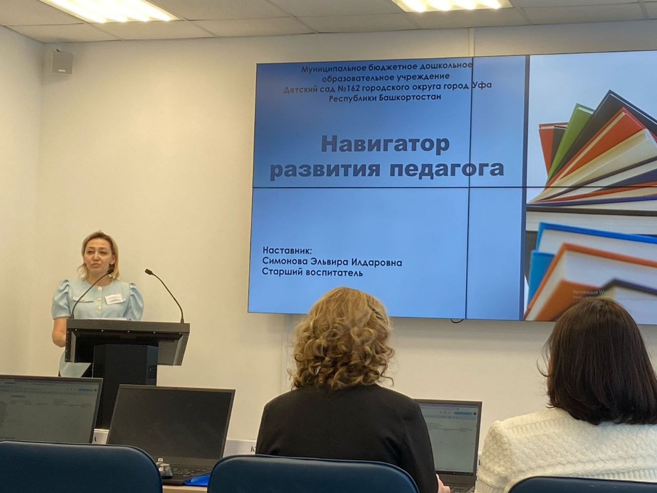 Эффективные практики наставничества в ОО - республиканский конкурс,  в котором лауреатом стала старший воспитатель Симонова Эльвира Илдаровна, старший воспитатель МБДОУ Детский сад 162 г.Уфа.