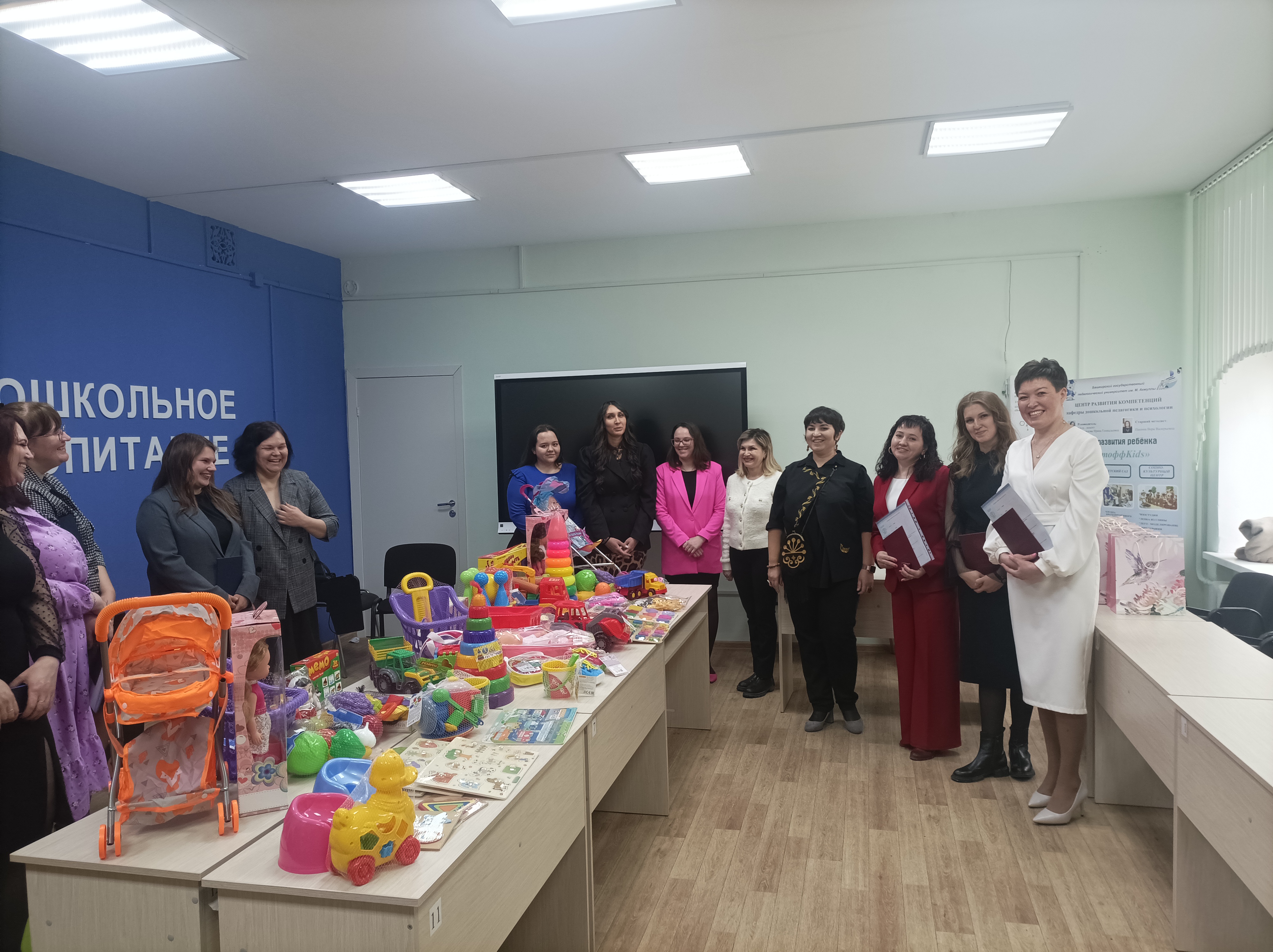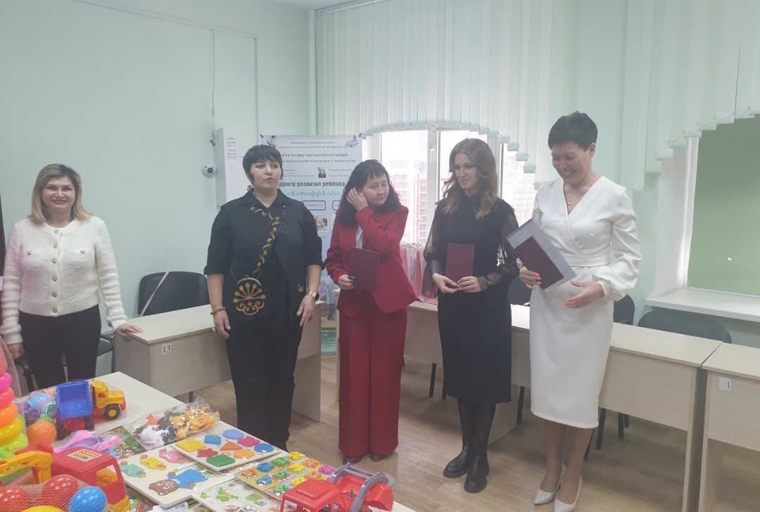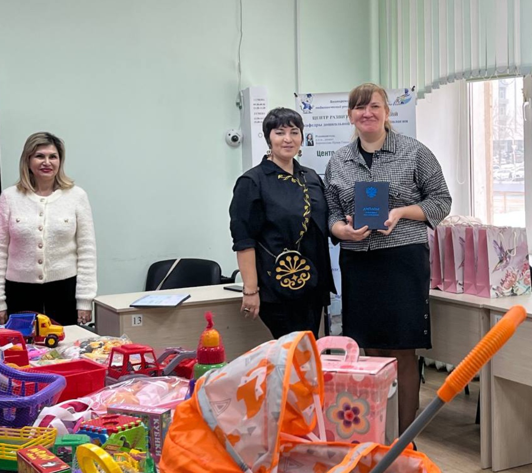Руководитель и преподаватели кафедры поздравили выпускников, отметив актуальность реализованного  благотворительного проекта "Выпускники Акмуллинского - детям".  Воспитанникам и обучающимся центра развития компетенций "Акмуллинская академия развития детей и семейного образования СОТЫ" подарены игрушки, книги, дидактические пособия.
