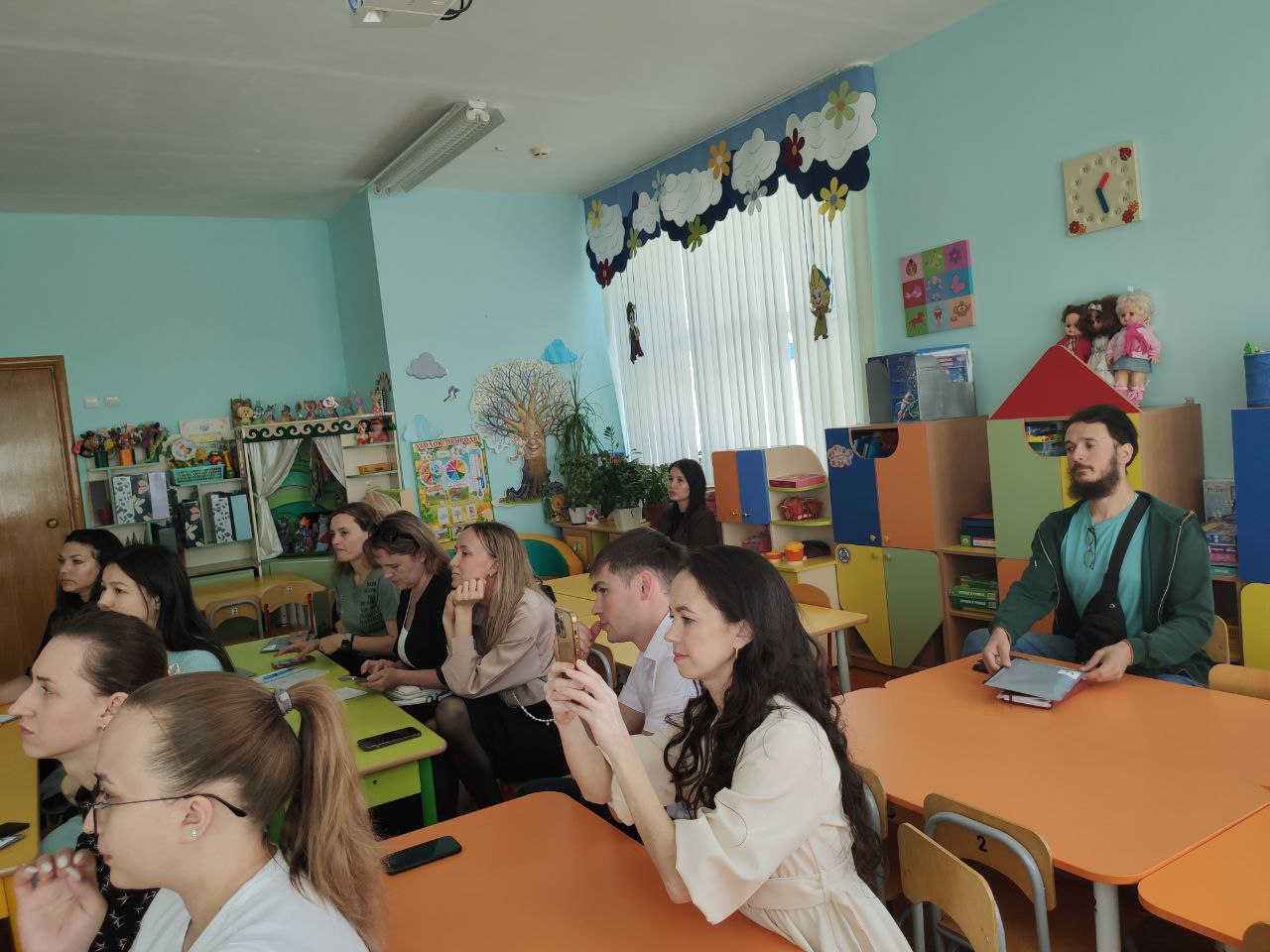 Мастер-класс включал активное взаимодействие участников и проходил в формате "Большой игры" на тему «Адаптация без стресса: поддержка ребенка при поступлении в детский сад и школу». Родителям были предложены игровые задания в увлекательной форме: дискуссии, игры на развитие эмоционального интеллекта, викторины, мозговой штурм, а также ссылки на полезную литературу и памятки по теме мастер-класса.